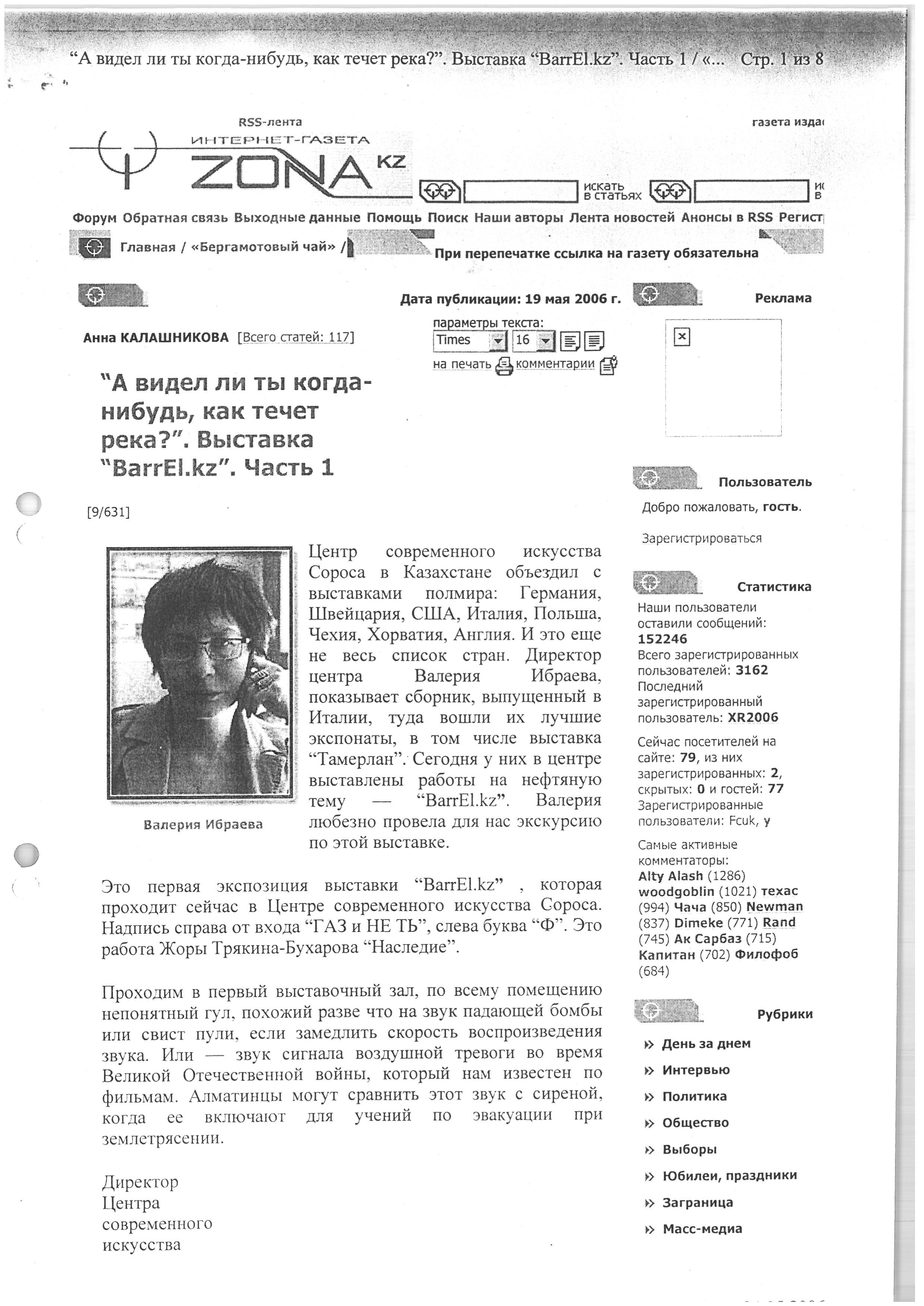 "'Have you ever seen a river flow?' Exhibition 'BarrEl.kz.' Part 1." 2006.