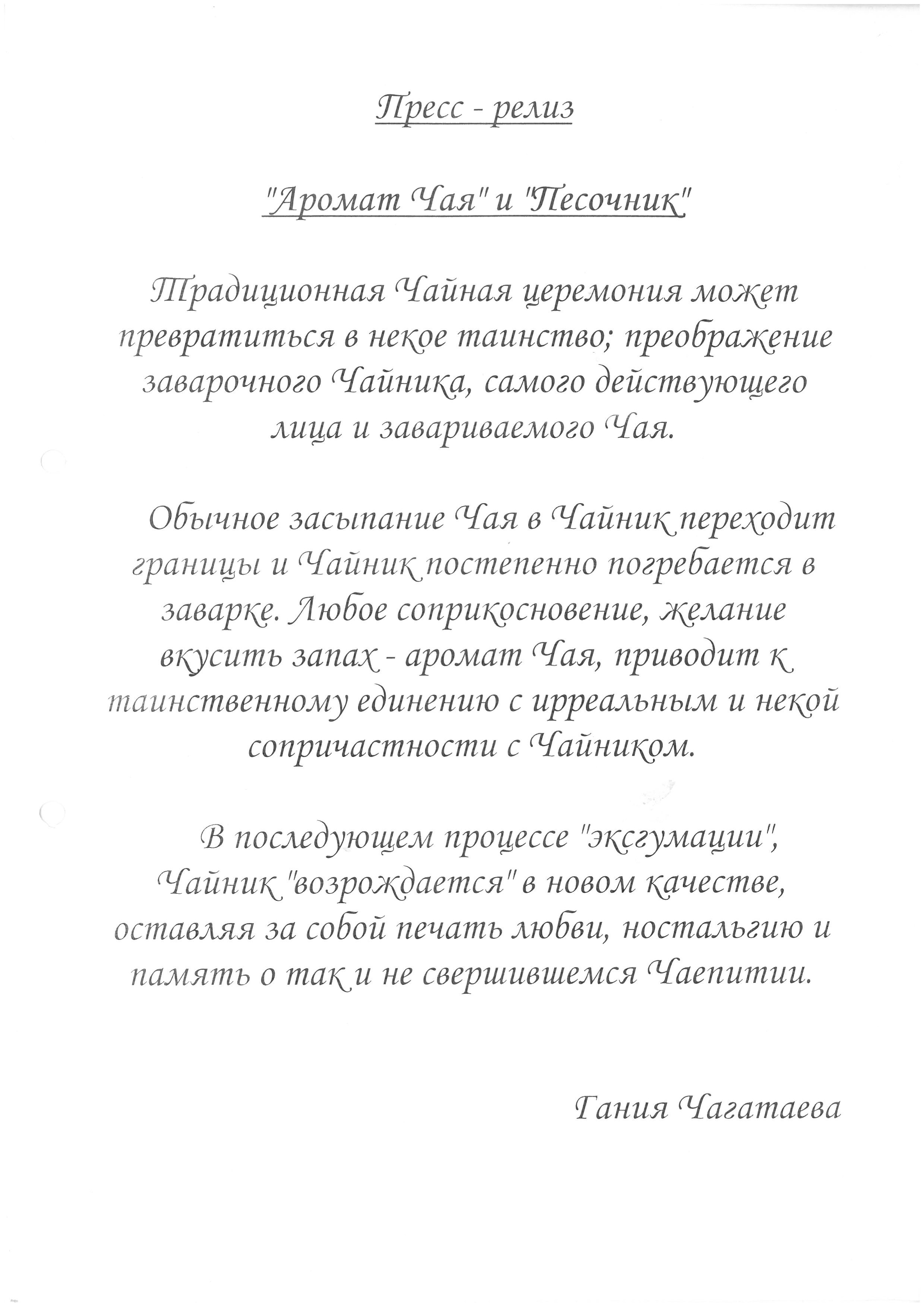 Chagatayeva, G. "'The Aroma of Tea' and 'The Sandman.'" Year unknown.