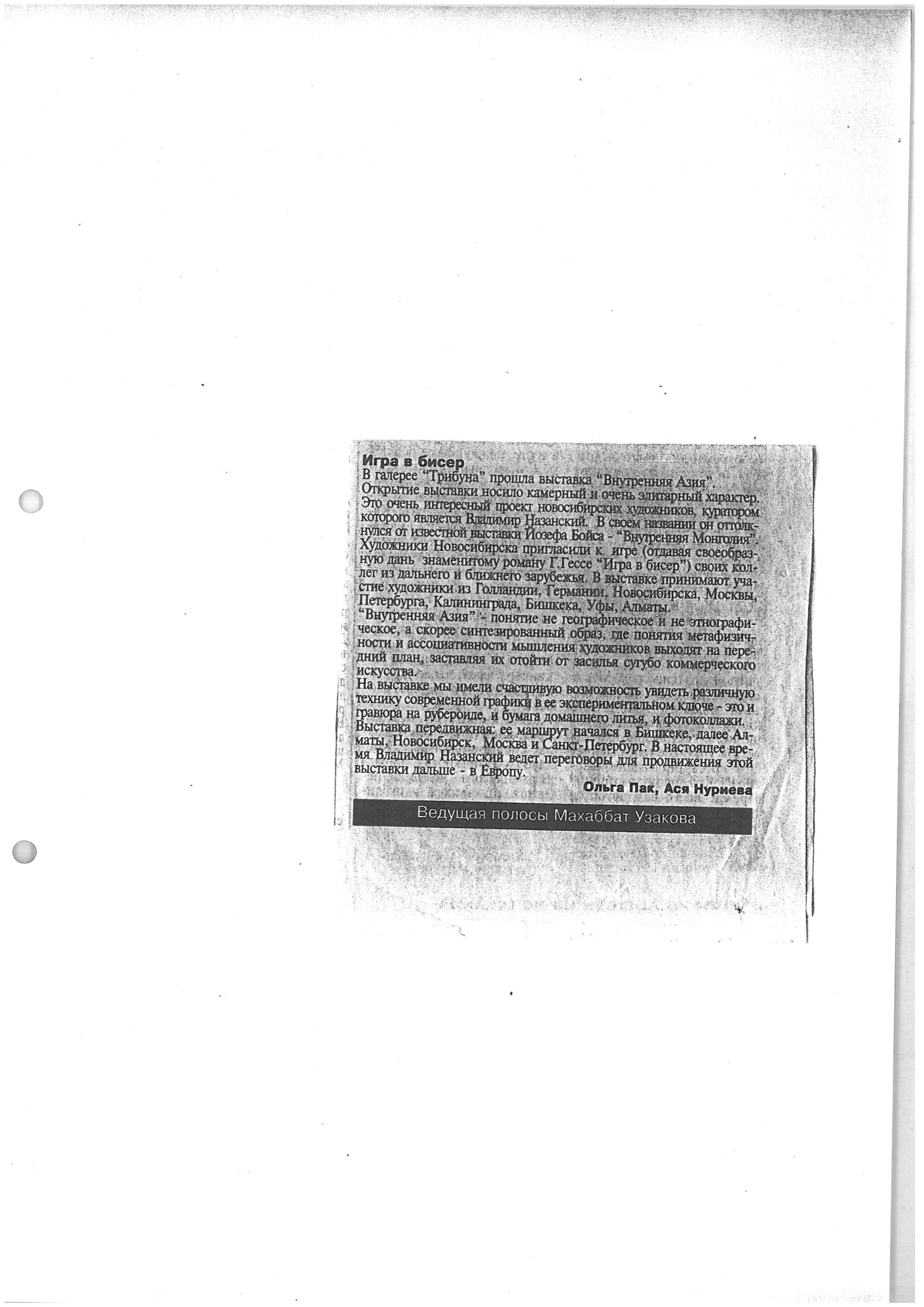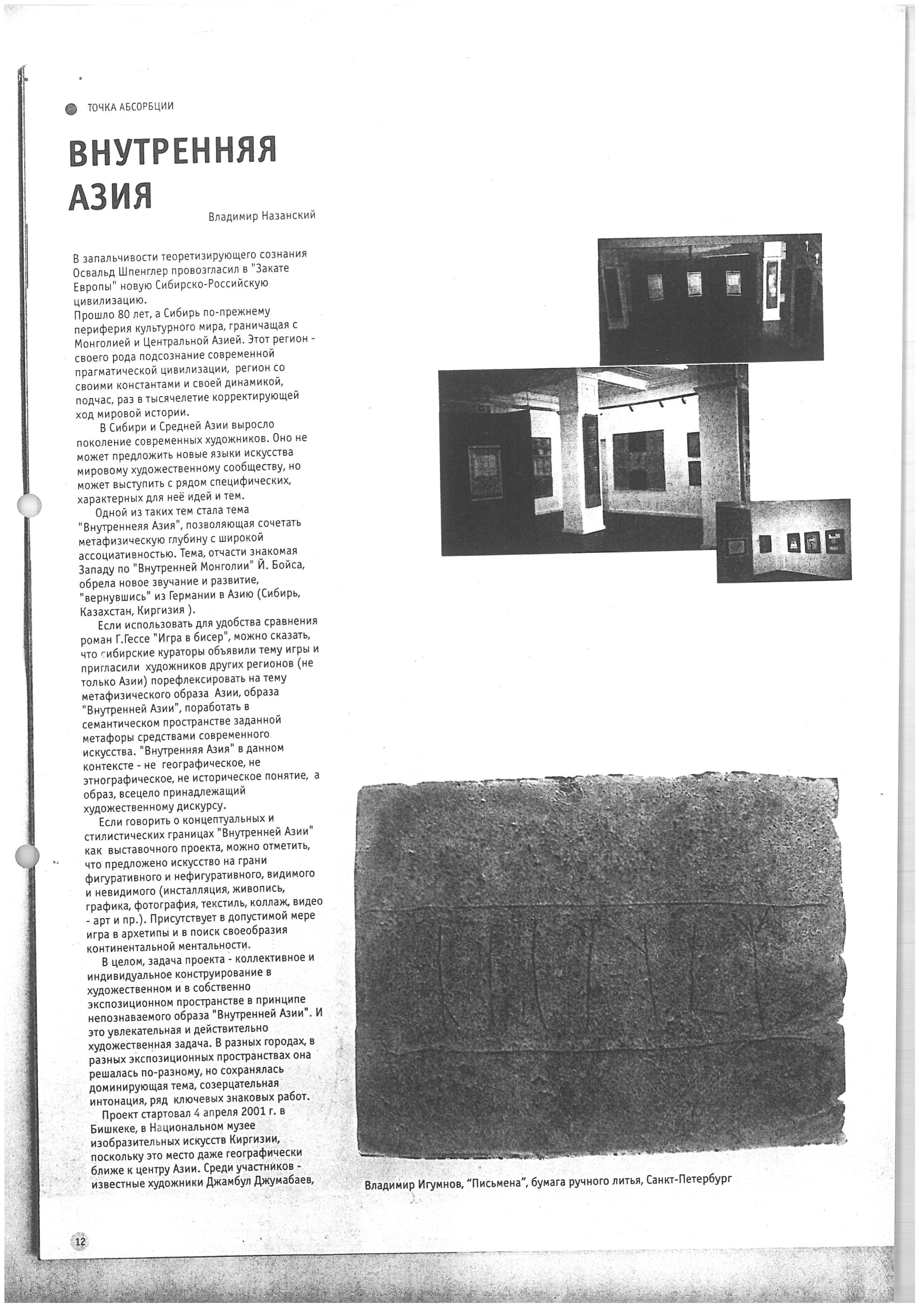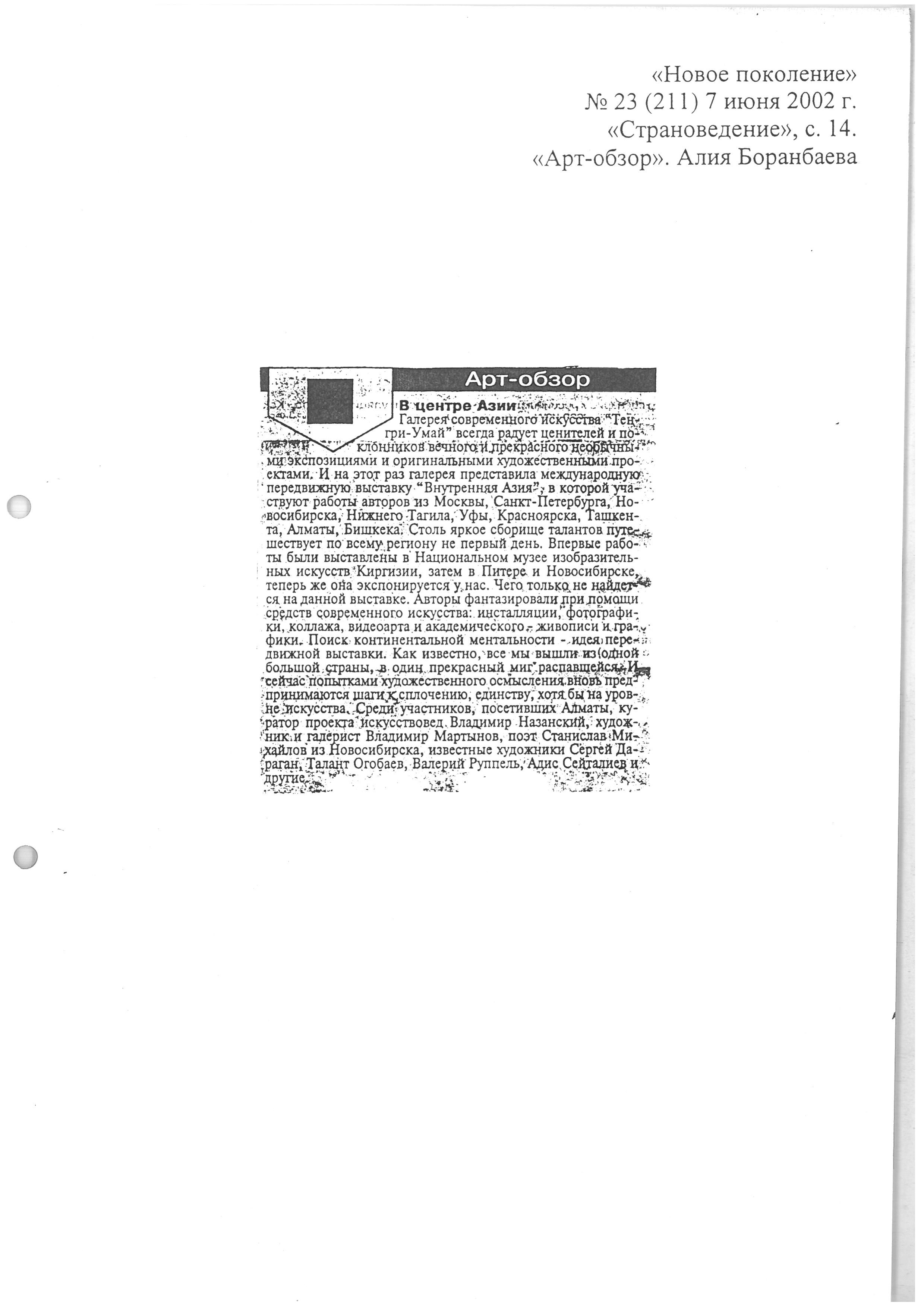 Boranbaeva, A. "Art Review." 2002.