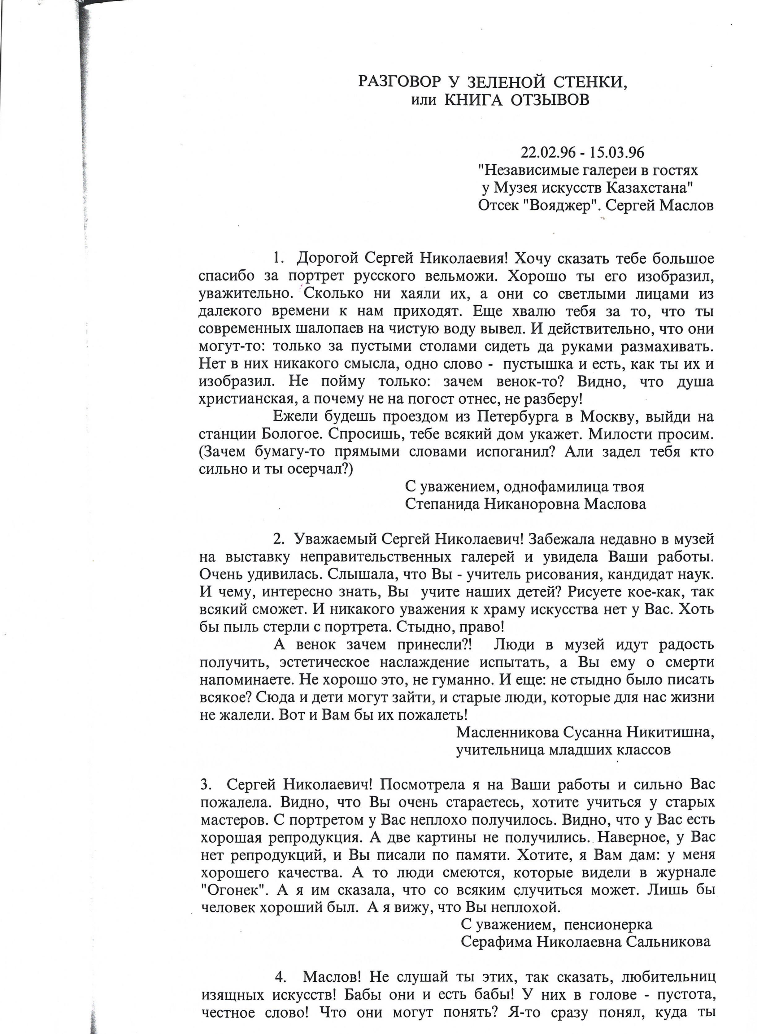 Ezenova, N. "I take Sergei Maslov seriously." 1996.