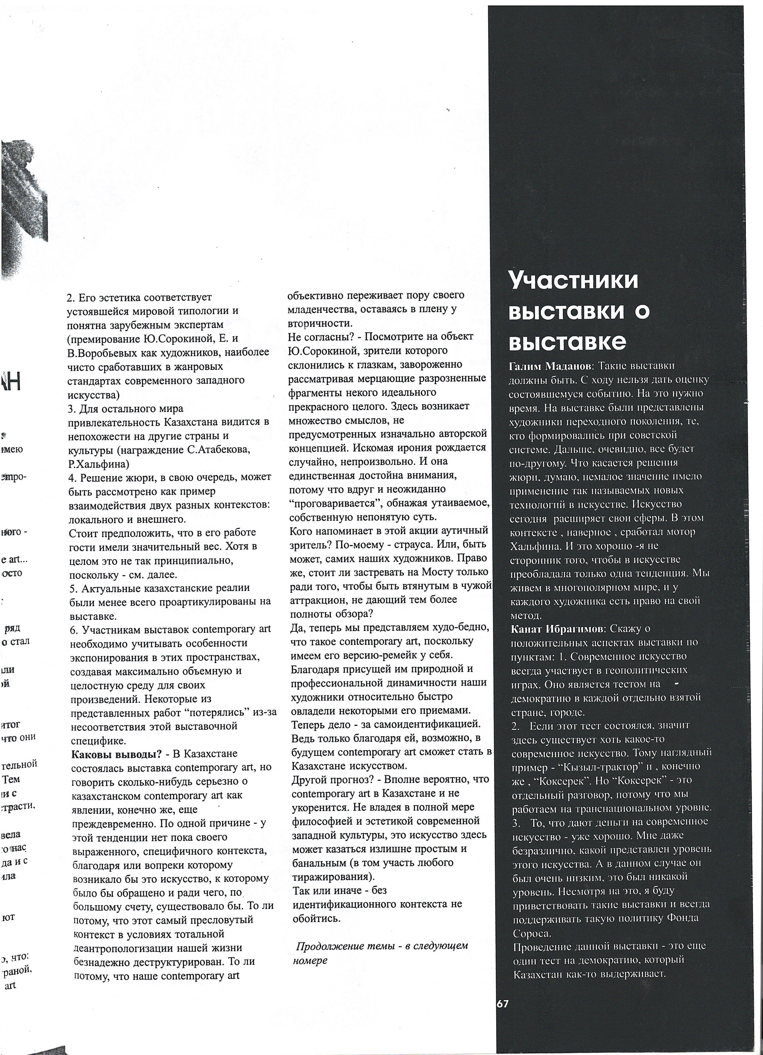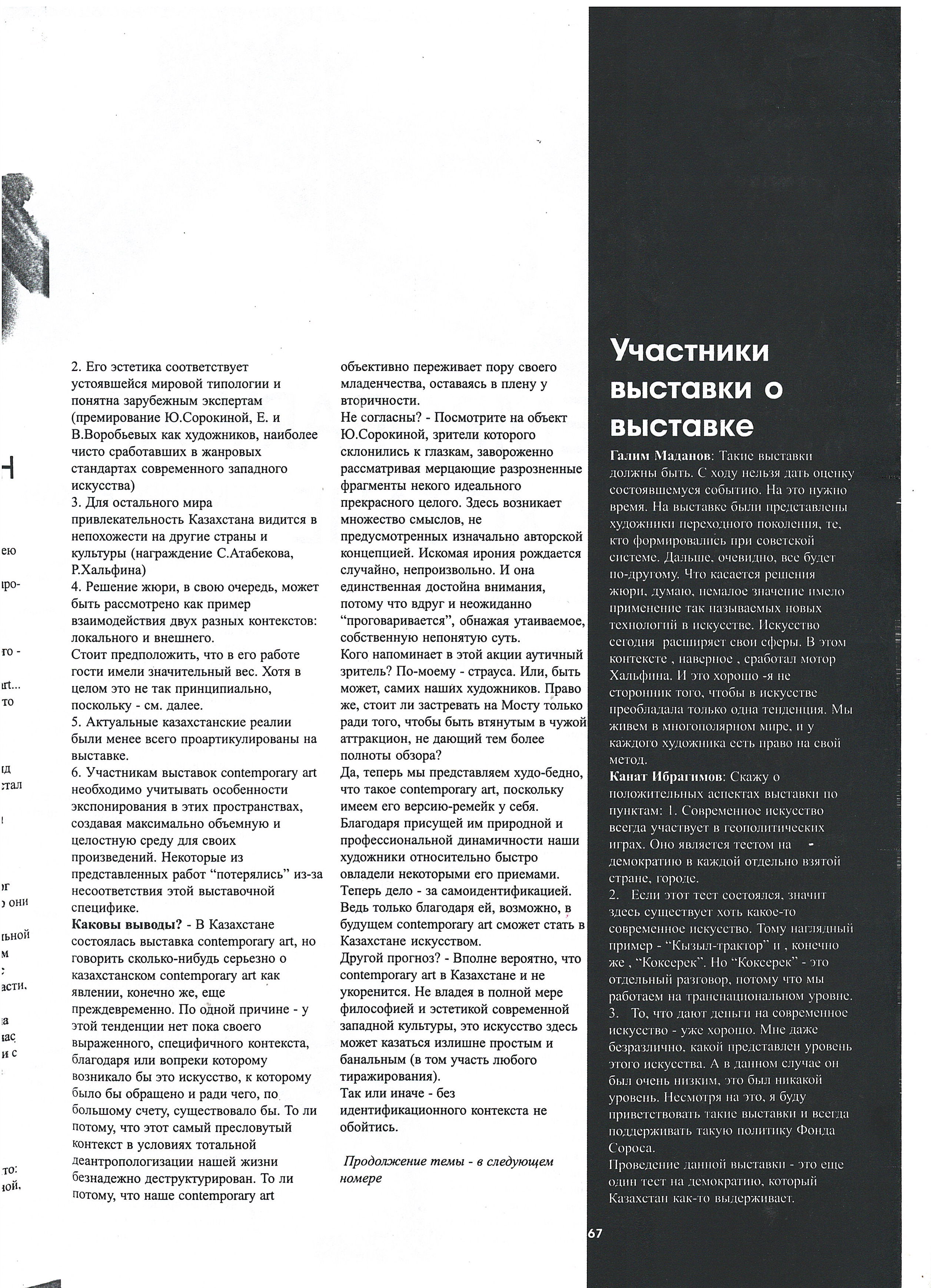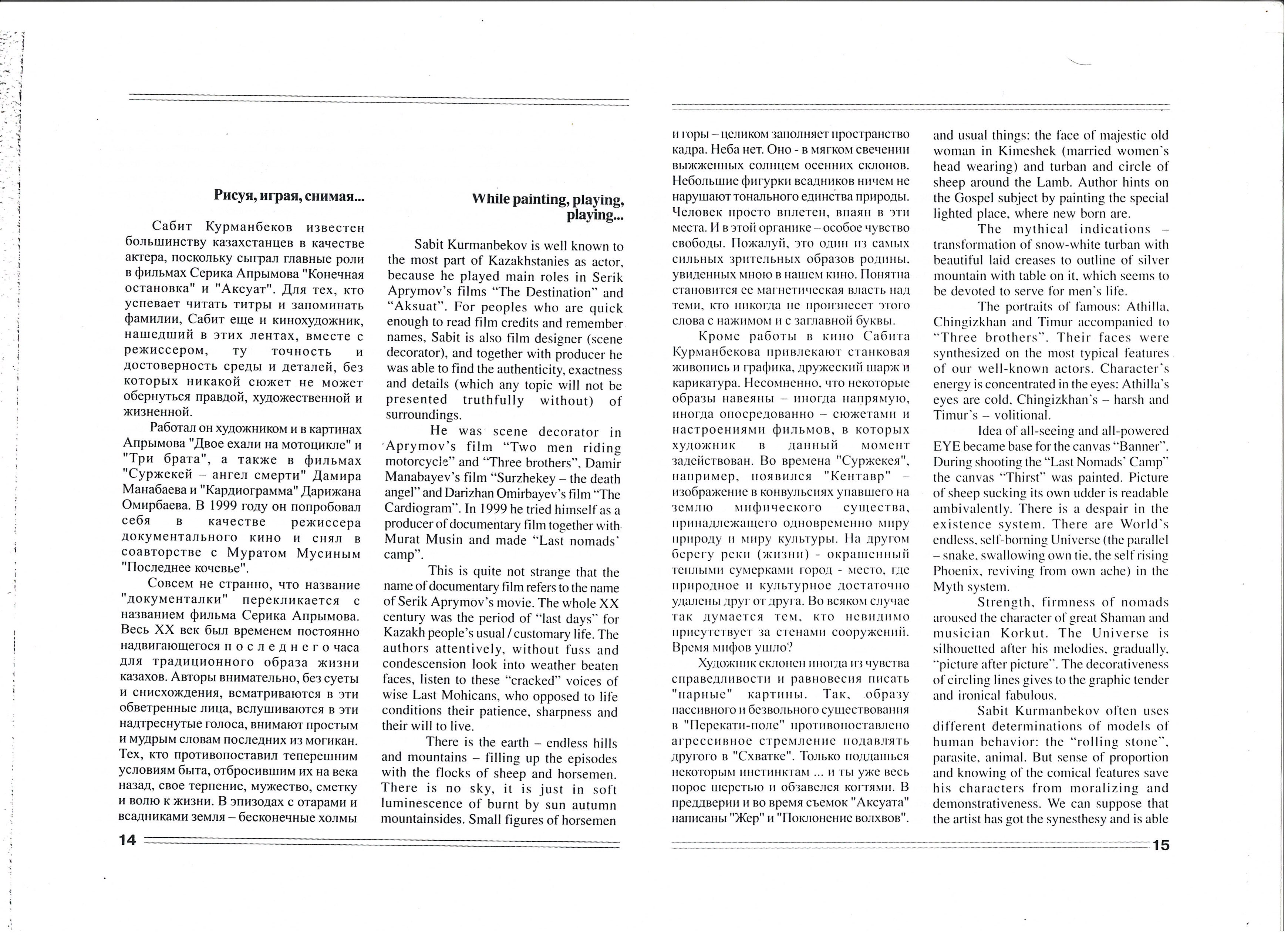 Yevdokimenko, K. "Second Breath." 2002; Boranbaeva, A. "Art Review." 2002.