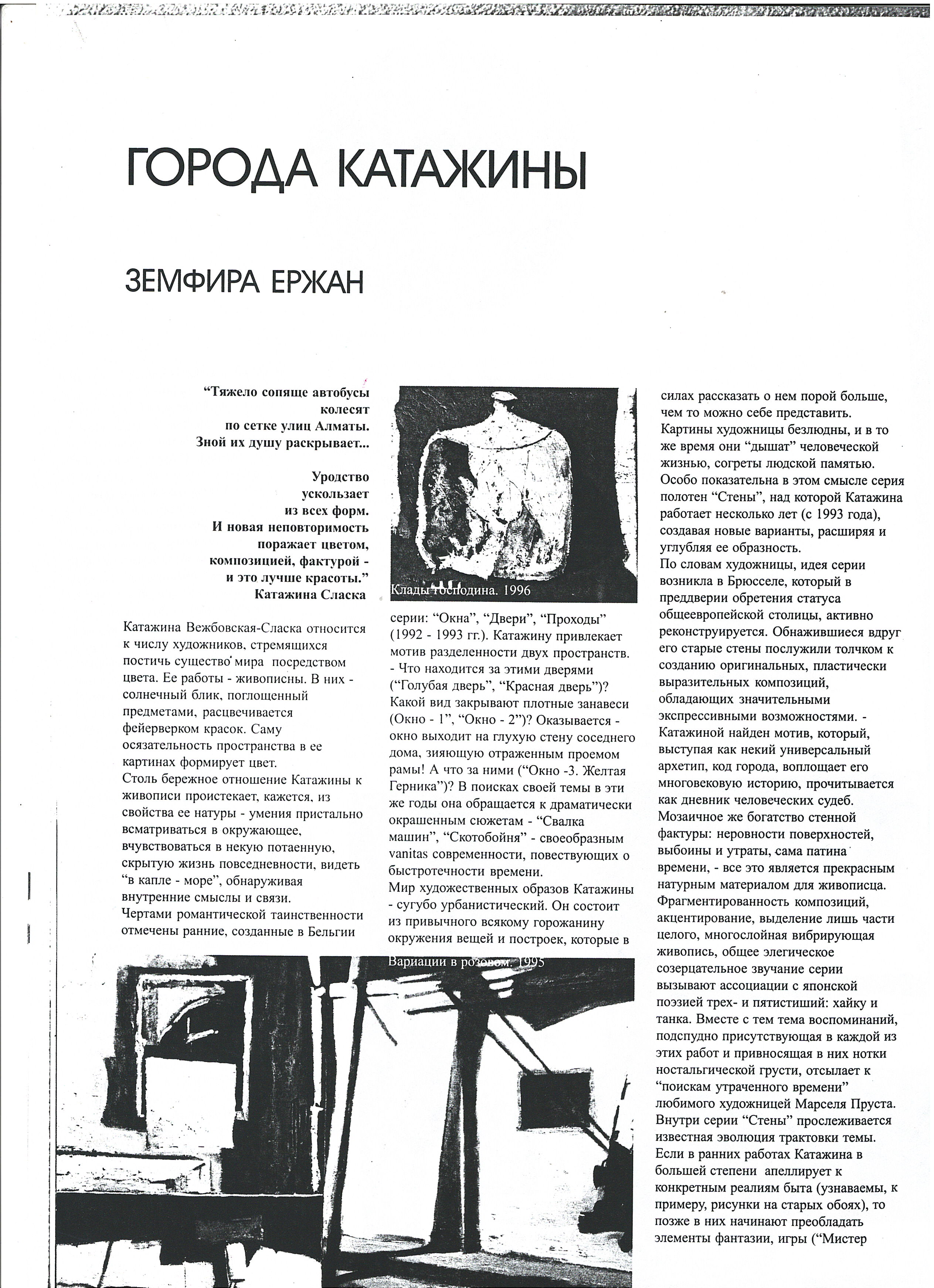 Yerzhan, Z. "The Cities of Katazhina." 1999.