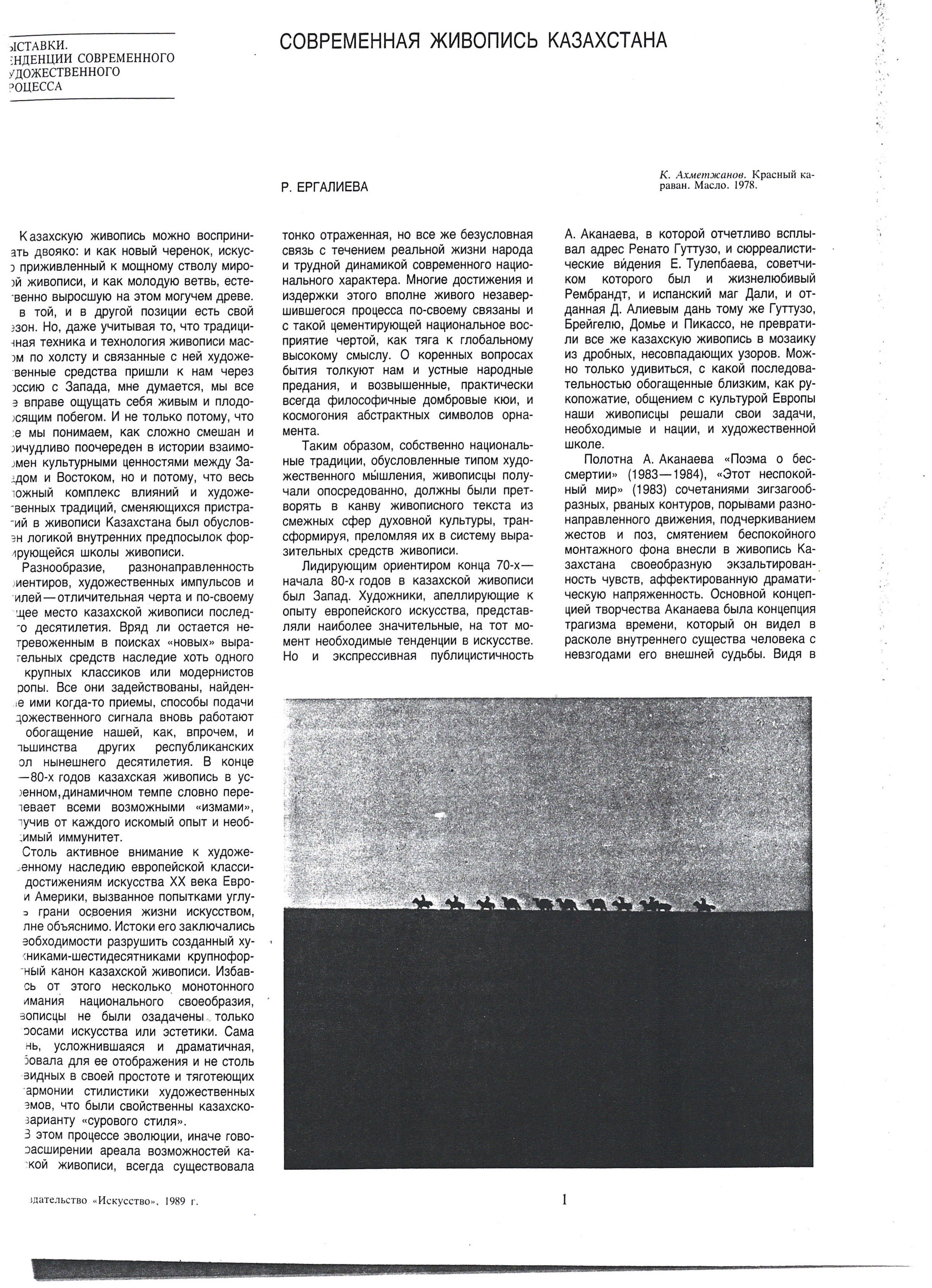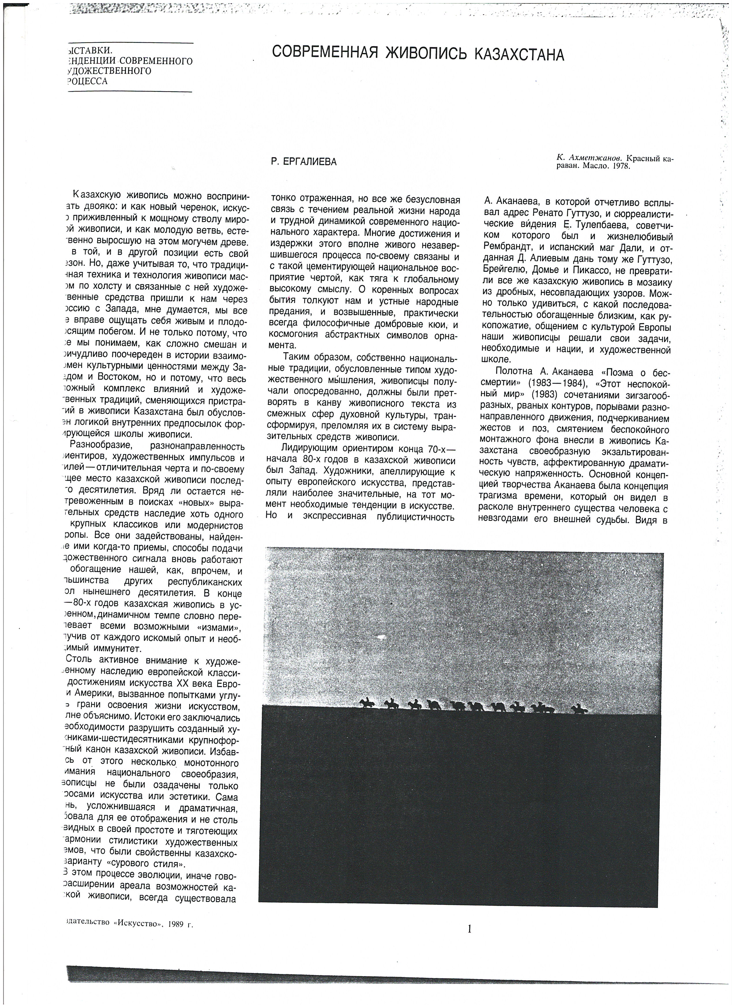 Ergalieva, R. "Contemporary Painting of Kazakhstan." 1989.