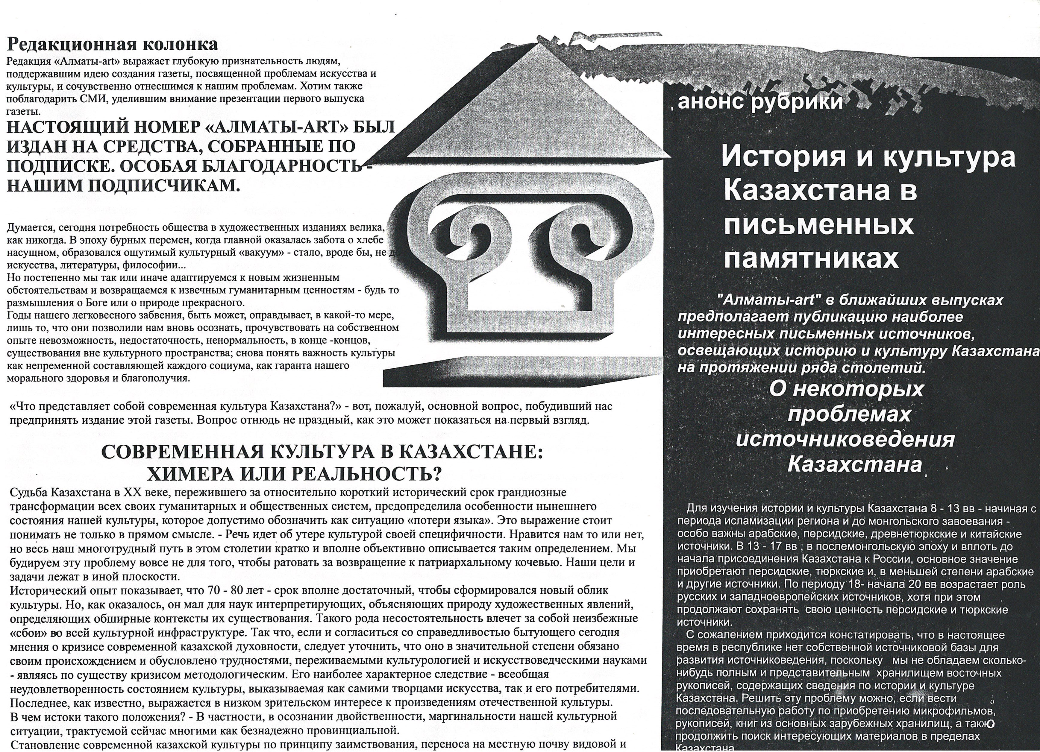 Yerzhan, Z. "Contemporary culture in Kazakhstan: chimera or reality?" 1997.