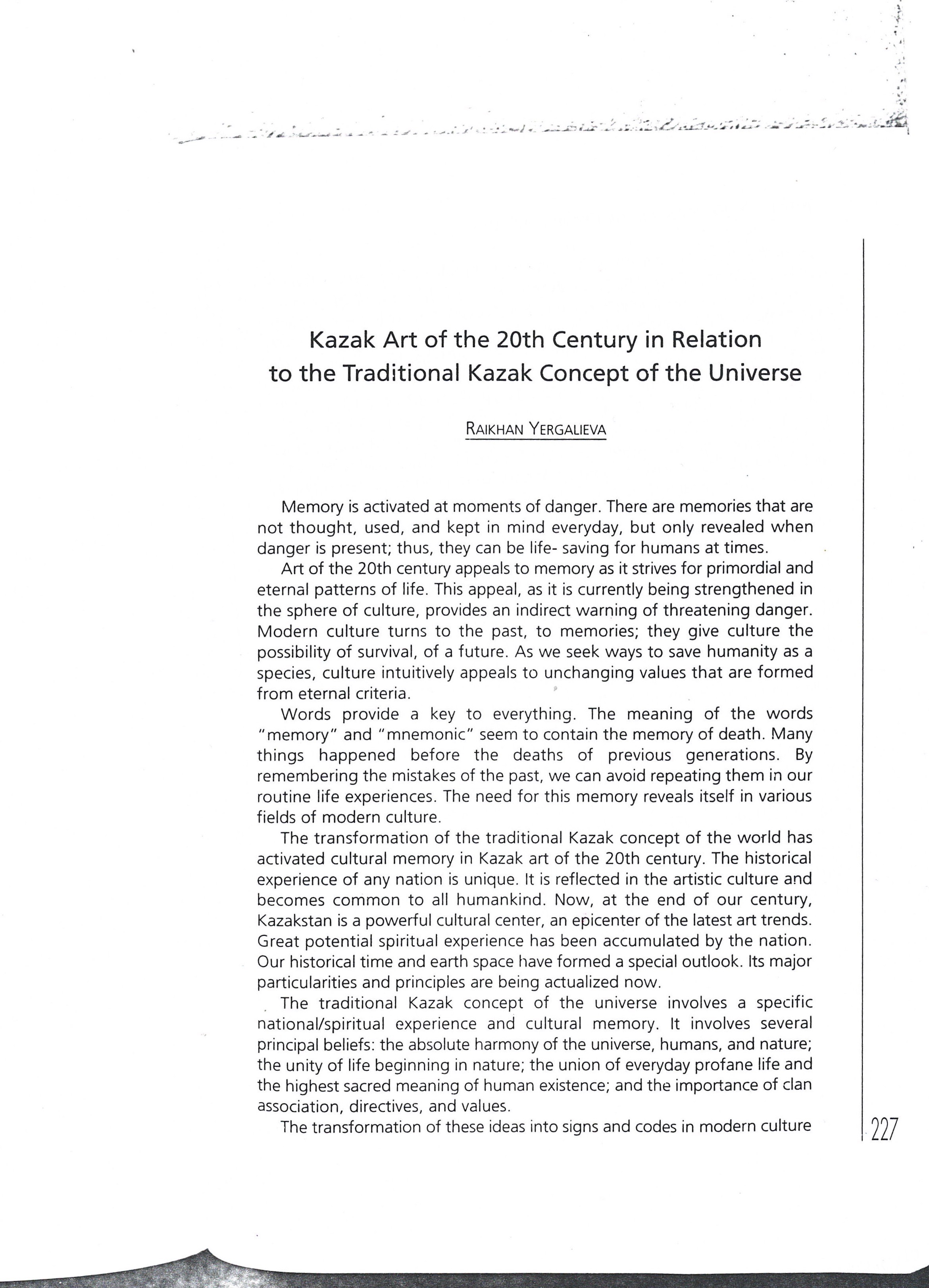 Ergalieva Raykhan. "Kazak Art of the 20th Century in Relation to the Traditional Kazak Concept of the Universe". Year unknown.