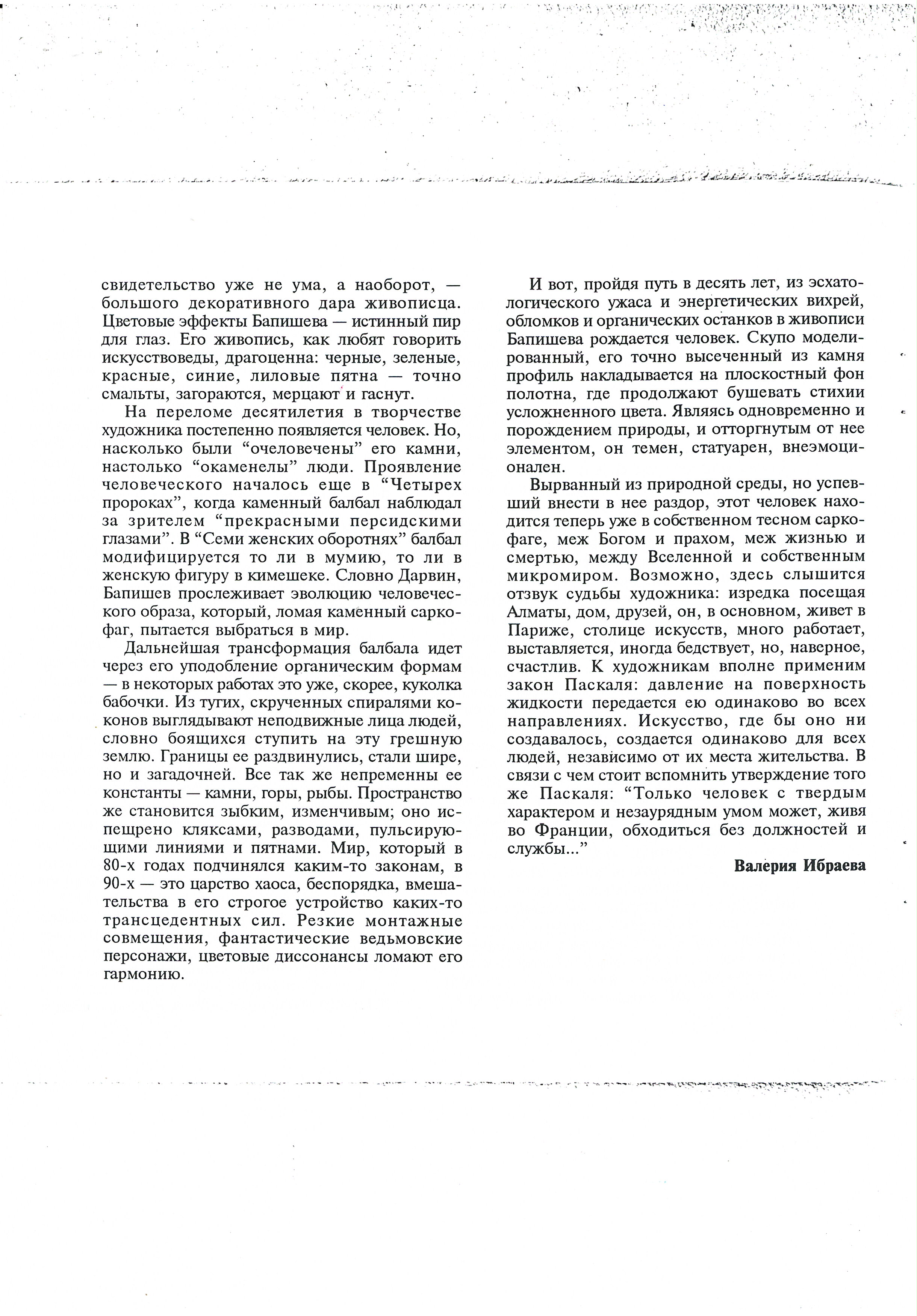 Ibraeva, V. "Bakhyt Bapishev (catalogue)." 1995.