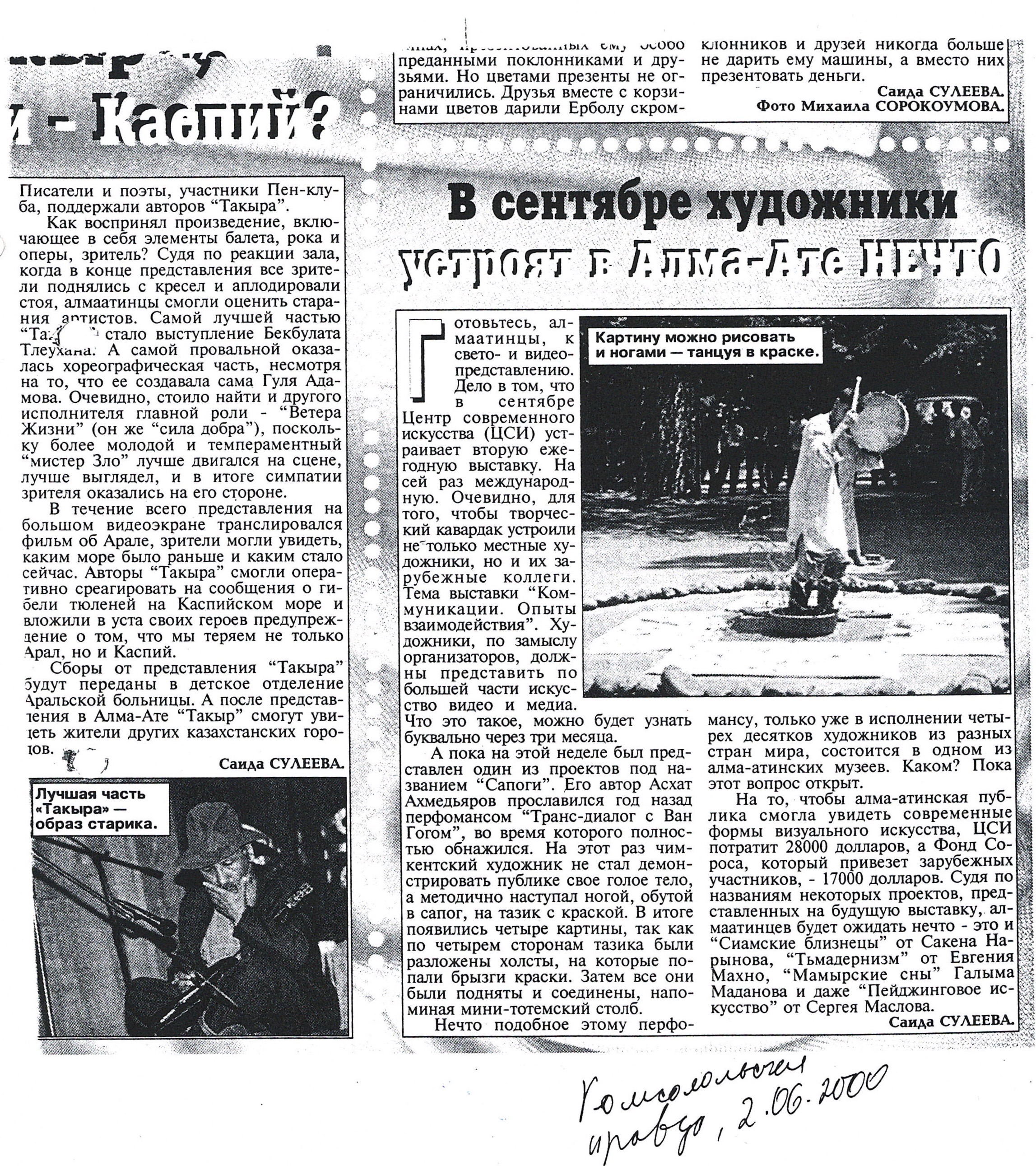 Suleeva, S. "In September, artists will organize SOMETHING in Almaty." 2000.
