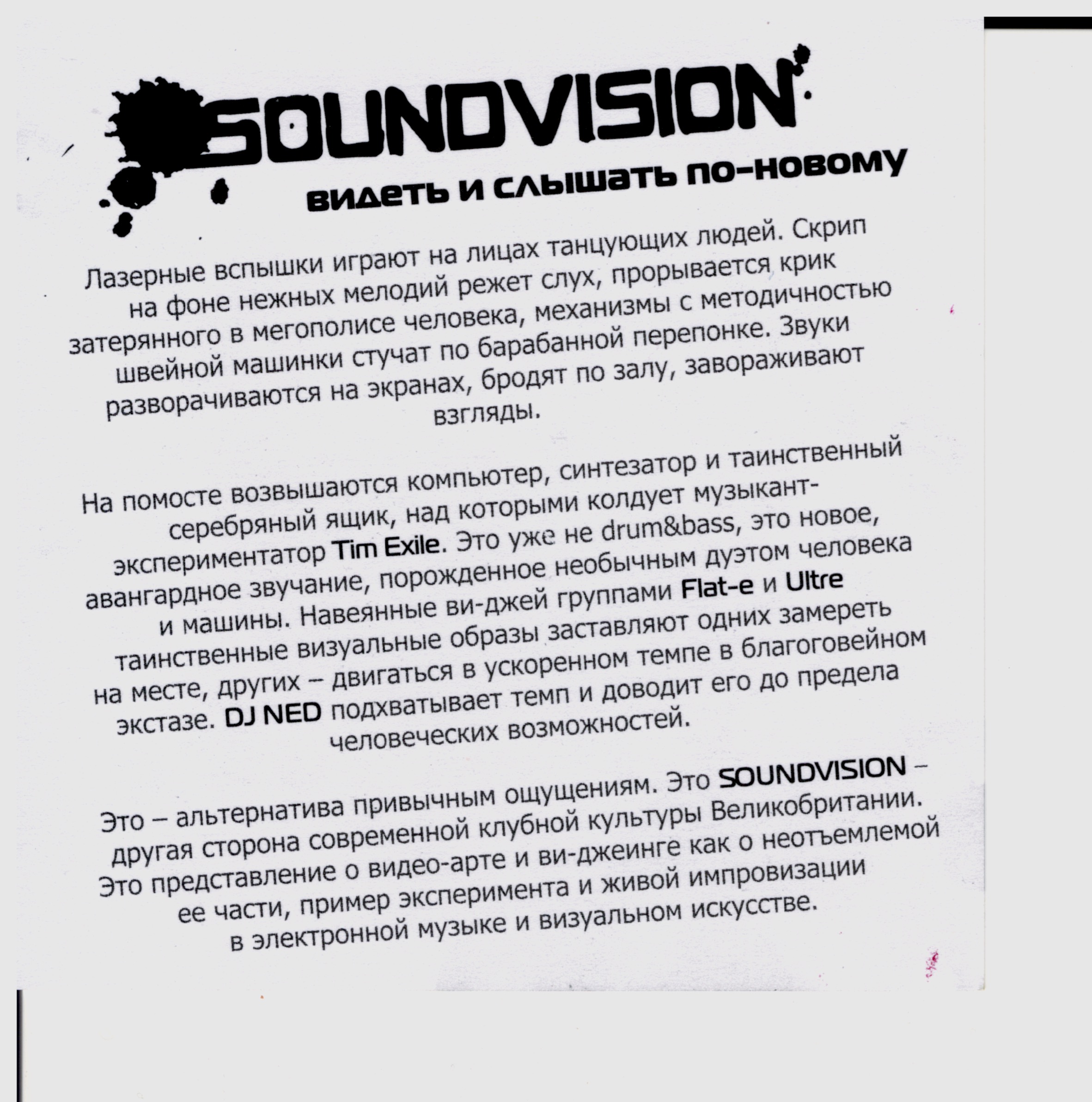 Author unknown. "UK's contemporary electronic music and visual art "SOUNDVISION"". 2005.