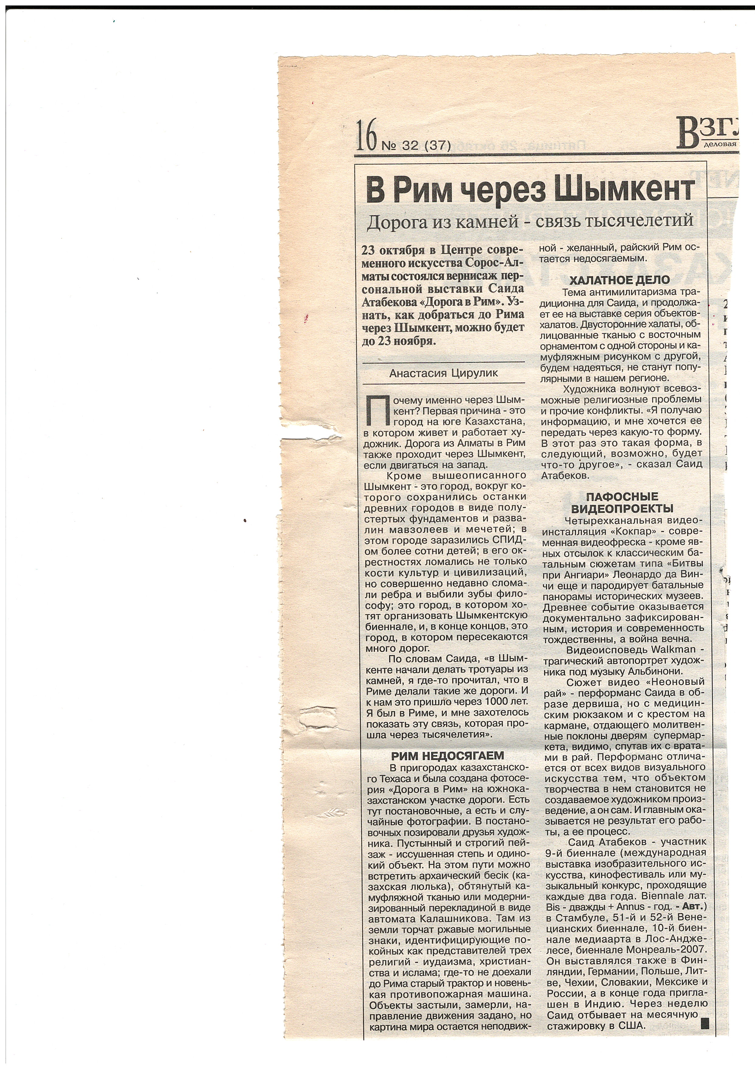 Tsirulik, A. "To Rome through Shymkent." 2007.