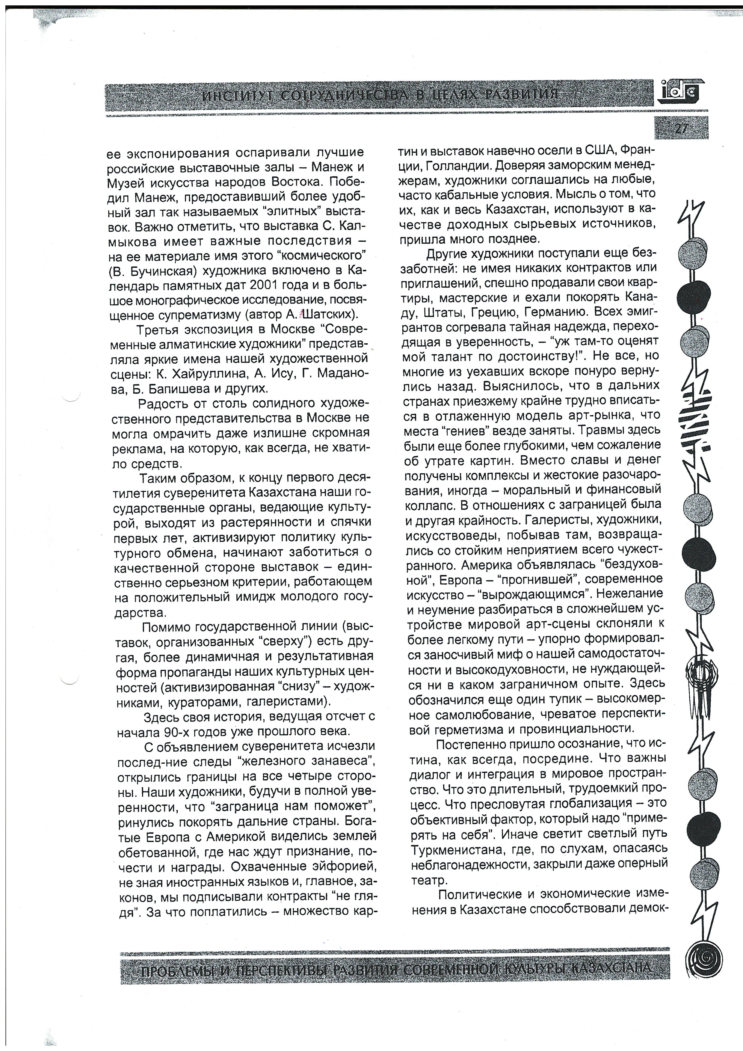 "Problems and Prospects for the Development of Contemporary Culture in Kazakhstan."