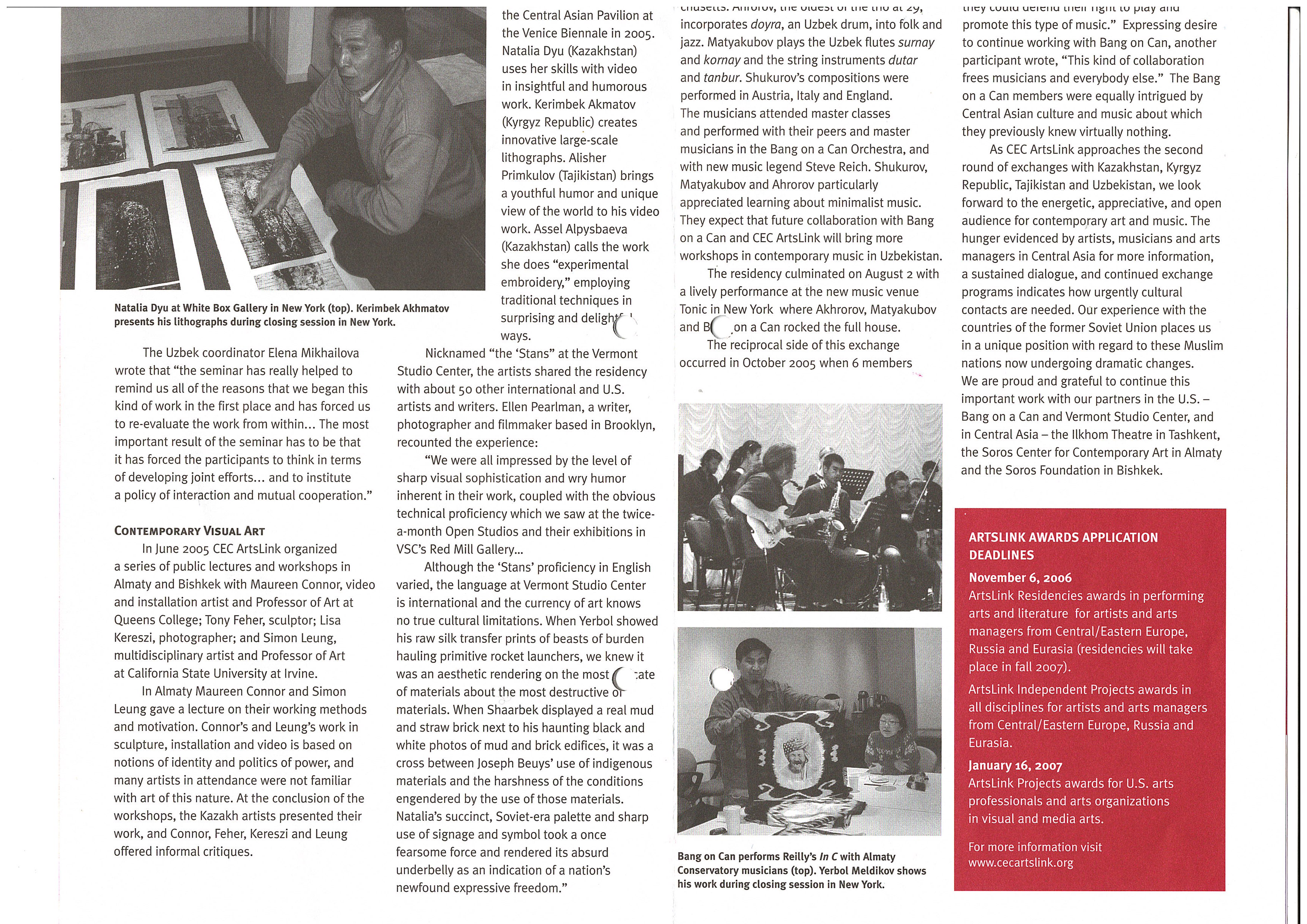 Author unknown. "CEC ArtsLink VisArt Central Asia Residency." 2006.