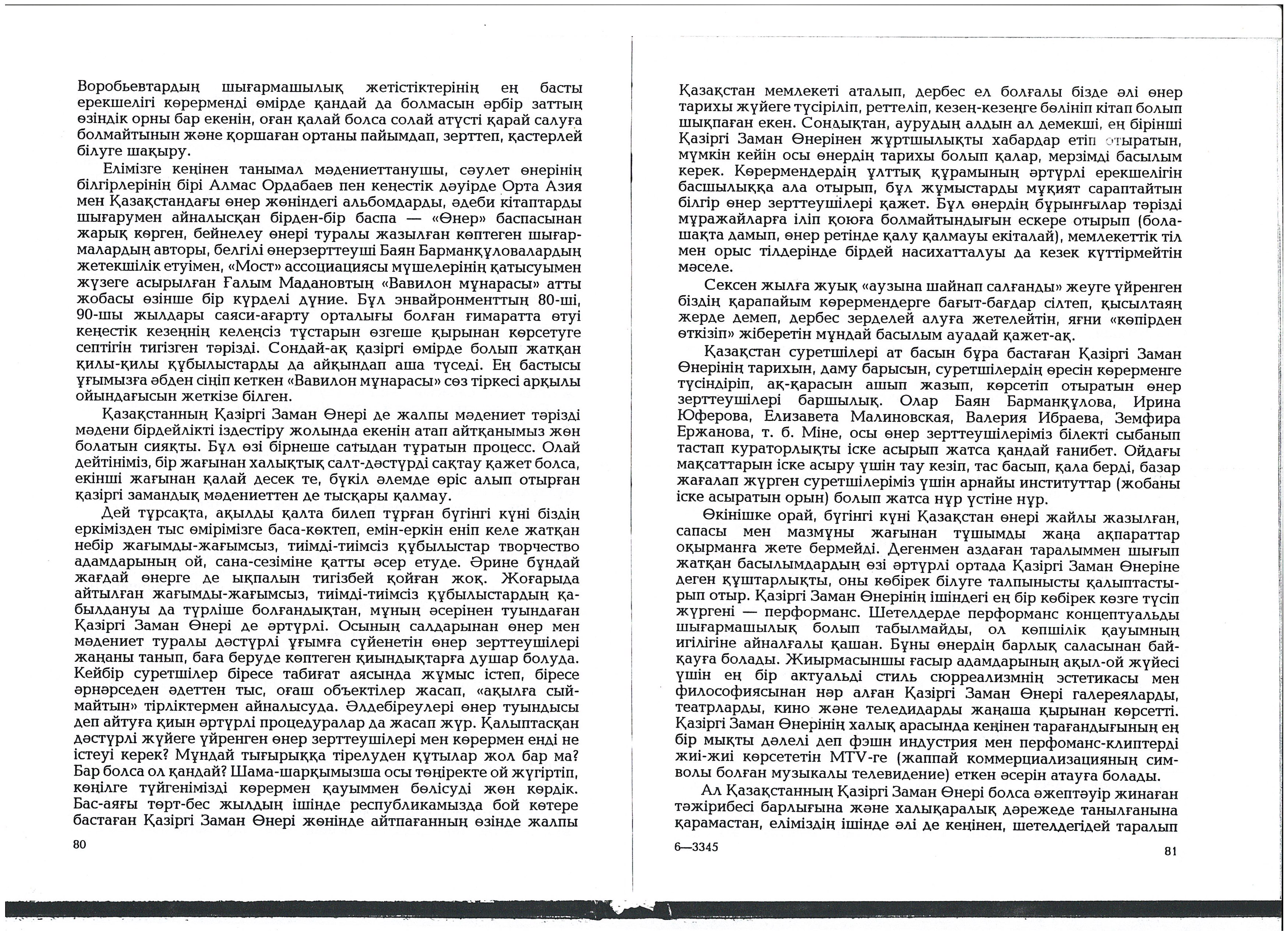 Bazarbaeva Daryzhan. “Fragments About New Art.” Year unknown.