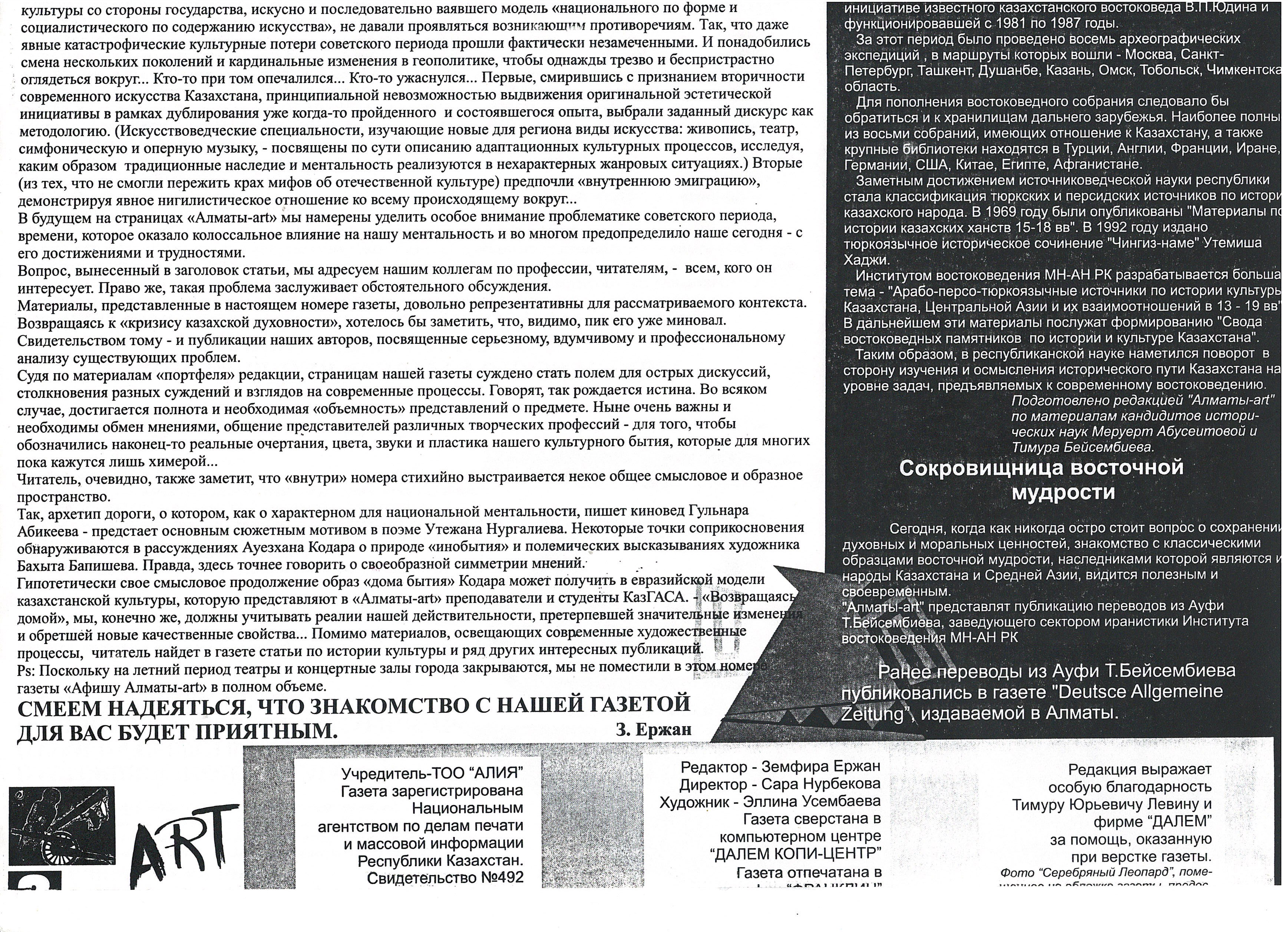 Yerzhan, Z. "Contemporary culture in Kazakhstan: chimera or reality?" 1997.