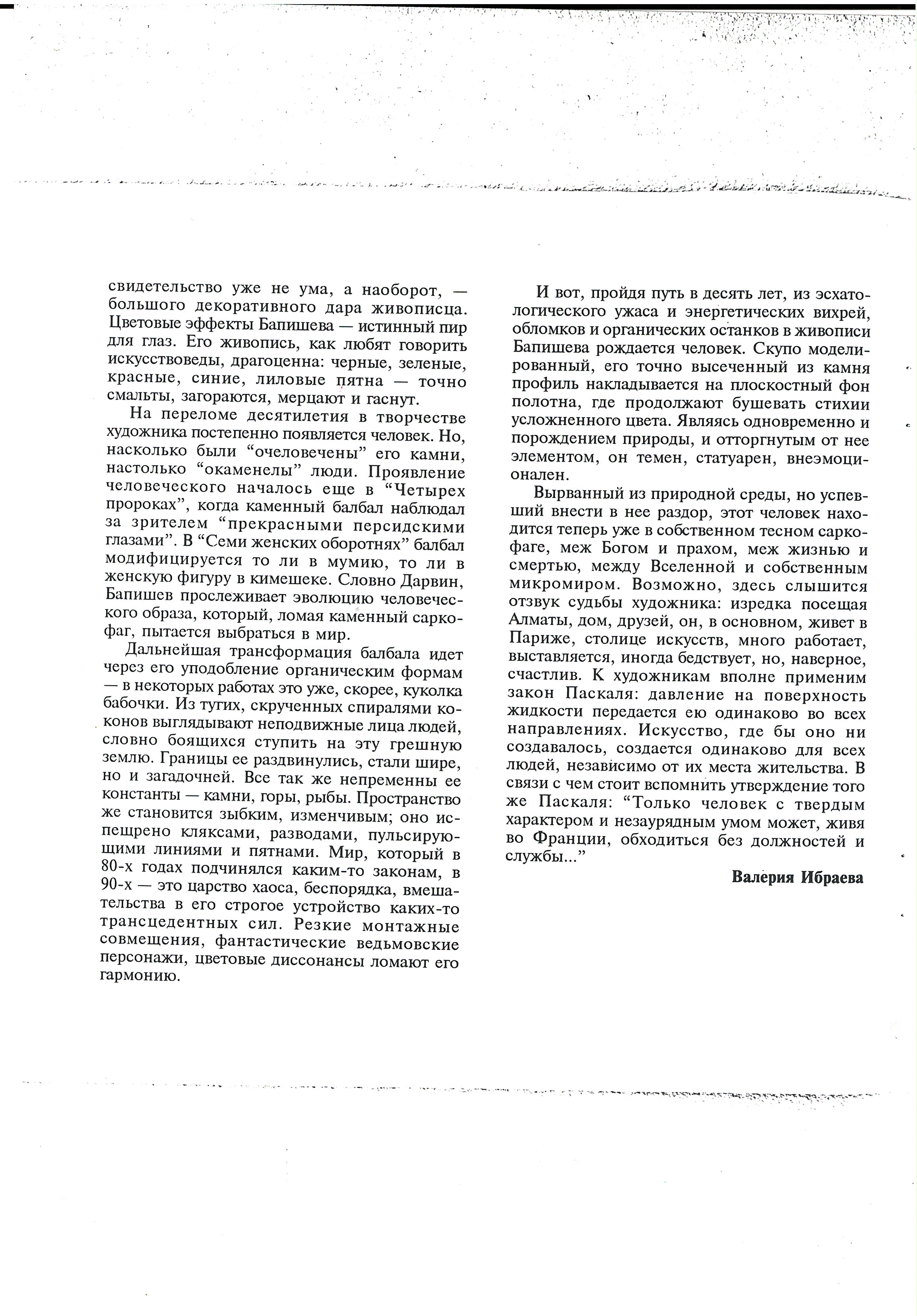 Ibraeva, V. "Bakhyt Bapishev (catalogue)." 1995.