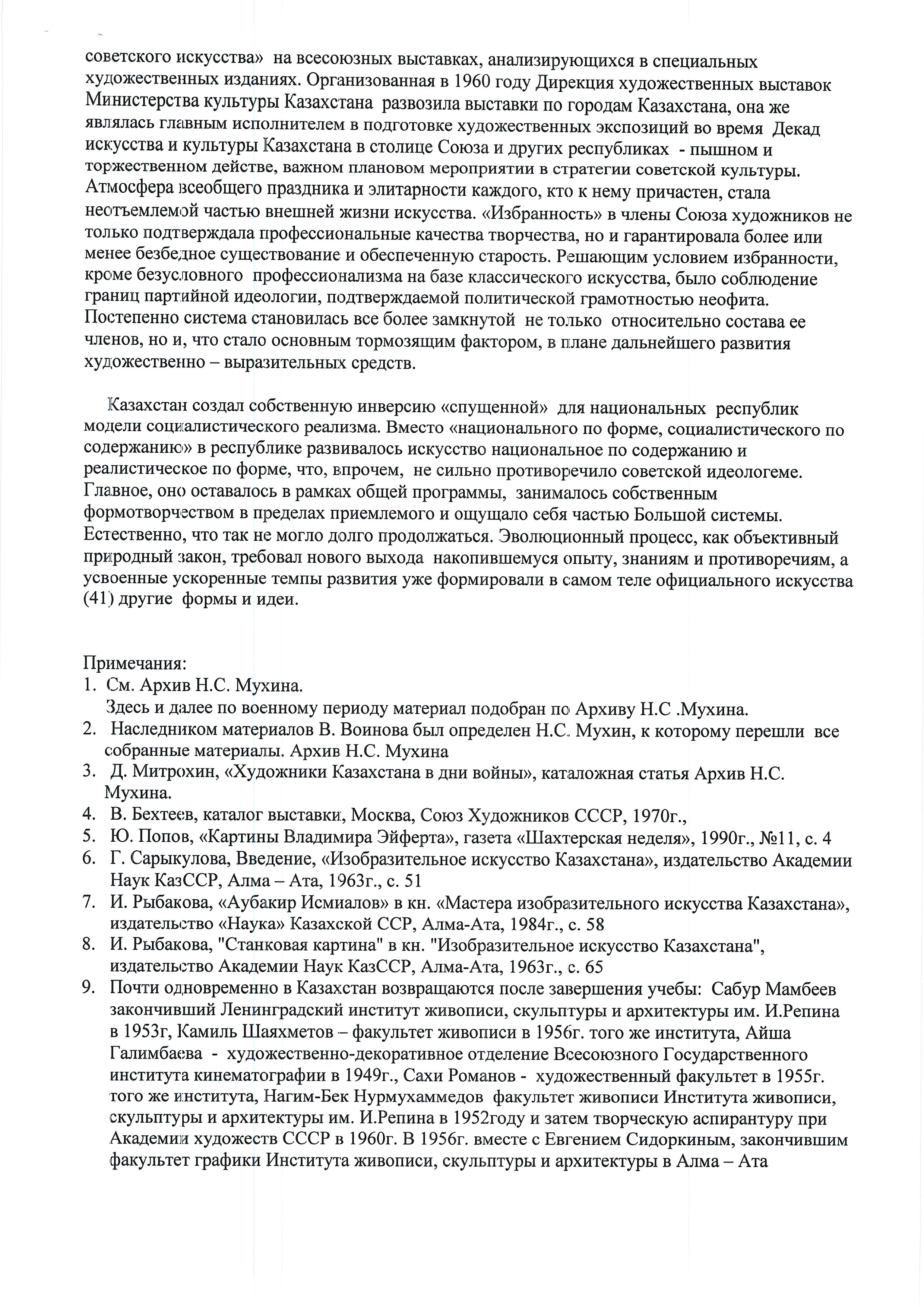 "(Combine) "Oner (Art Fund of Kazakhstan)," Almaty, KazSSR. "Alma-Ata State Theater and Art Institute (AGTHI)," Almaty, KazSSR. State Tretyakov Gallery, Moscow, Russia/USSR. Graphic Experimental Workshop (in the Union of Artists of Kazakhstan), Almaty, Kazakh SSR. Directorate of Art Exhibitions of the Ministry of Culture of Kazakhstan, Almaty, Kazakh SSR. House of Officers, Almaty, Kazakh SSR. Senez Creative House of the Union of Artists of the USSR, Solnechnogorsk, USSR. House of Artists (Union of Artists of the USSR), Moscow, USSR. Institute of Painting, Sculpture, and Architecture of the Academy of Arts of the USSR, Leningrad, USSR. Institute of Literature and Art of the Academy of Sciences of the Kazakh SSR named after Mukhtar Auezov (Department of Fine Arts), Kazakh SSR. Kazakh State Academy and Institute of Theater and Cinema (in 1993, the university was transformed into the Kazakh State Institute of Theater and Cinema named after T. K. Zhurgenov), Almaty, Kazakhstan. Kazakh State Academy of Arts (Kazakh State Institute of Theater and Cinema named after T. K. Zhurgenov?), Almaty, Kazakh SSR. "Kazakh State Academy of Arts (Kazakh State Institute of Theater and Cinema named after T. K. Zhurgenov?)", Almaty, Kazakh SSR. "Kazakh State Art Gallery named after T. G. Shevchenko", Almaty, Kazakh SSR. Kazakh State Art Gallery, Almaty, Kazakh SSR. Kazakh State Pedagogical Institute named after Abai (Faculty of Art and Graphic Design), Almaty, Kazakh SSR. Kazakh State Opera and Ballet Theater named after Abai, Almaty, Kazakh SSR. Kazakh Drama Theater named after Mukhtar Auezov, Almaty, Kazakhstan. Kazakh Branch of the USSR Art Fund. Karlag (Karaganda correctional labor camp), Karaganda Region, Kazakh SSR. Kazakhfilm Film Studio, Almaty, Kazakh SSR. Leningrad Academy of Arts, Leningrad, USSR. Ministry of Culture, Almaty, Kazakh SSR. Moscow Art Institute named after V. Surikov, Moscow, USSR. Alexander Pushkin Museum of Fine Arts, Moscow, USSR. "Polyclinic of the Presidential Administration of the Republic of Kazakhstan," Almaty, Kazakh SSR. "Opera and Ballet Theater," Almaty, Kazakh SSR. "Government of Kazakhstan." "Kazvoenokamata Recruitment Centers." "Union of Soviet Artists," Moscow, USSR. Union of Artists of Kazakhstan, Almaty, Kazakhstan. Kharkiv Art Institute (Faculty of Sculpture), Kharkiv, Ukrainian SSR. Art Gallery. Art Fund of Kazakhstan and the USSR. Artists of Kazakhstan (handwritten journal).