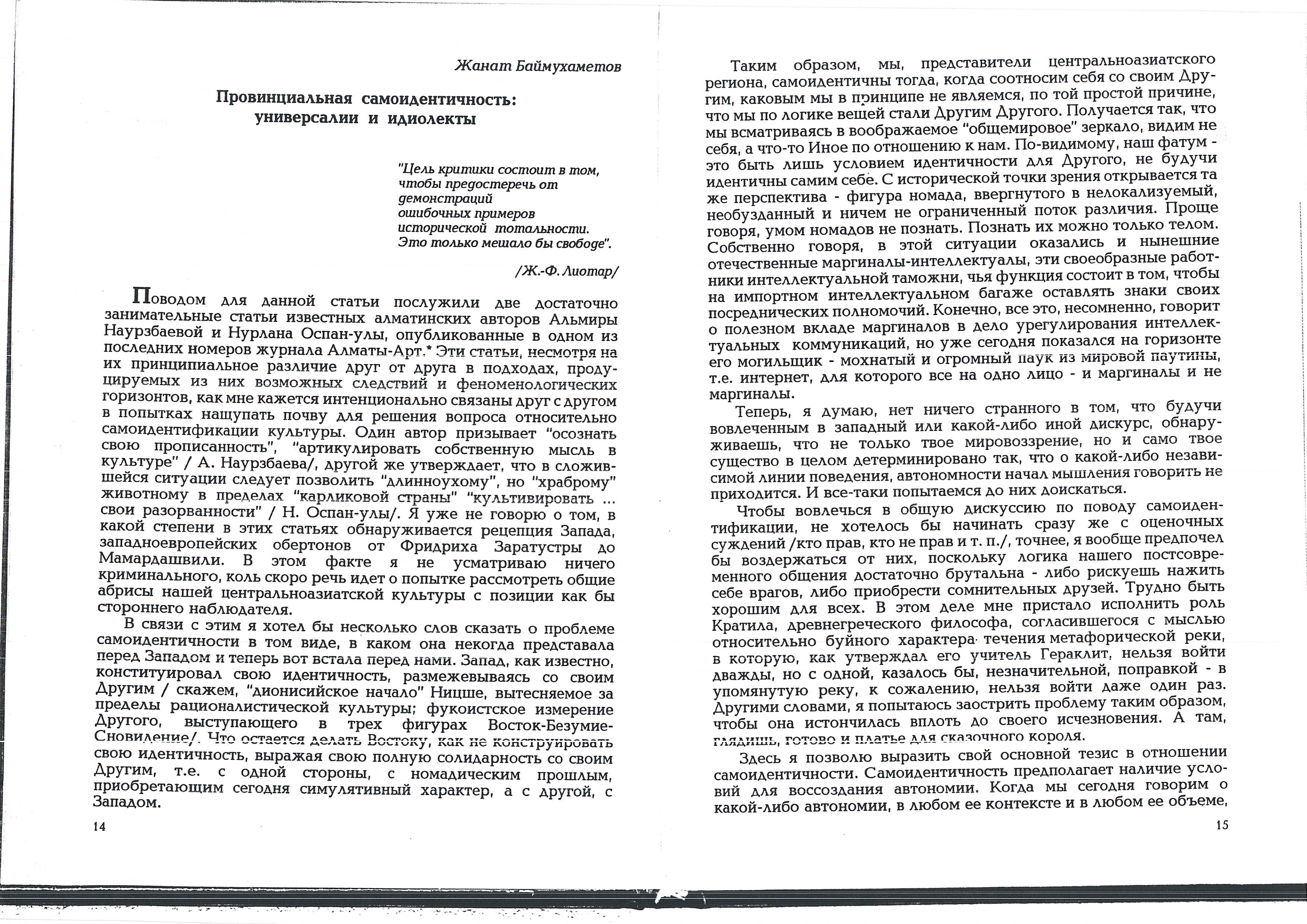 Баймухаметов, Ж. «Провинциальная самоидентичность: универсалии и идиолекты». 2000.