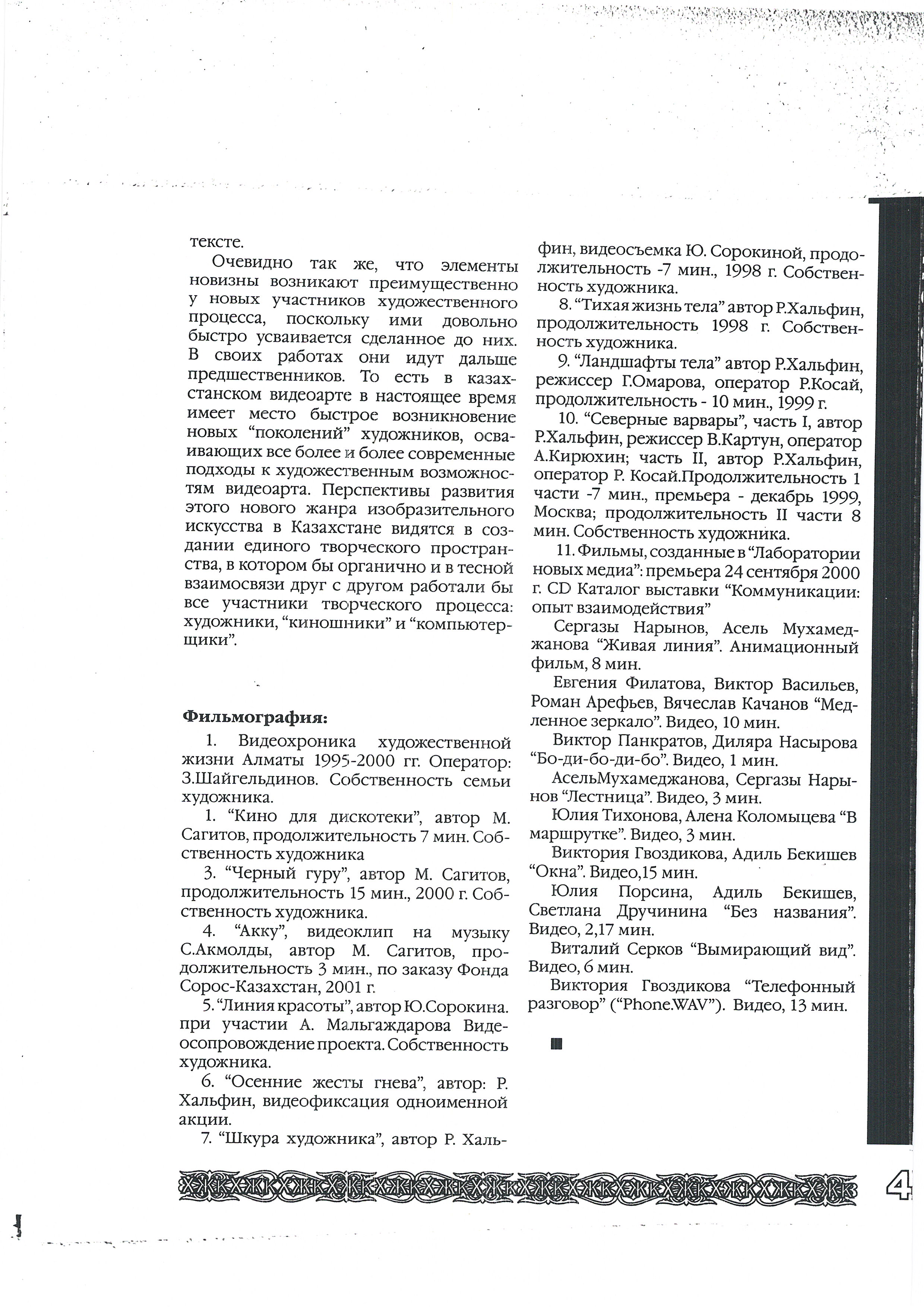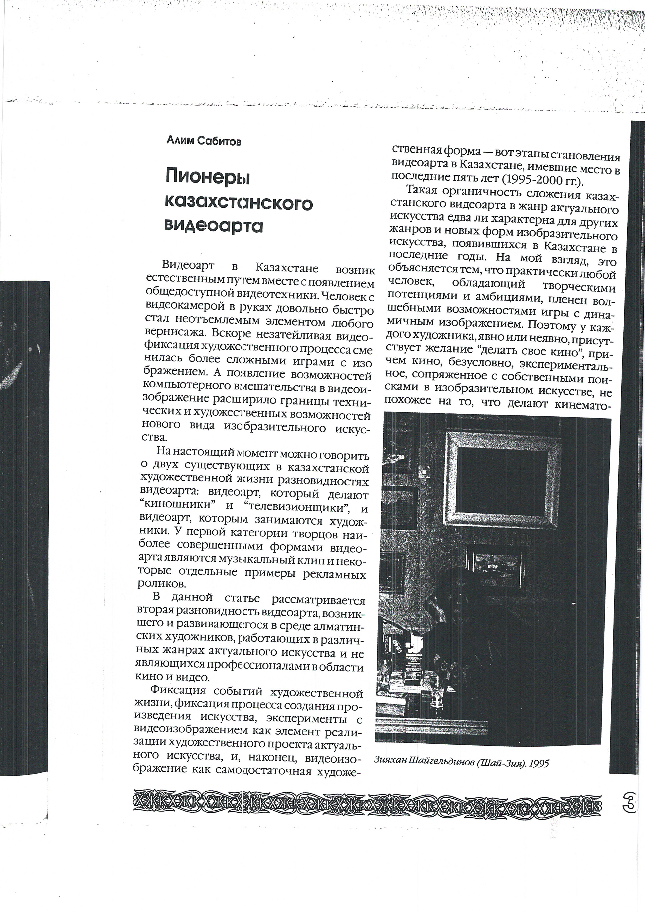 Сабитов, А. «Пионеры казахстанского видеоарта». 2001.