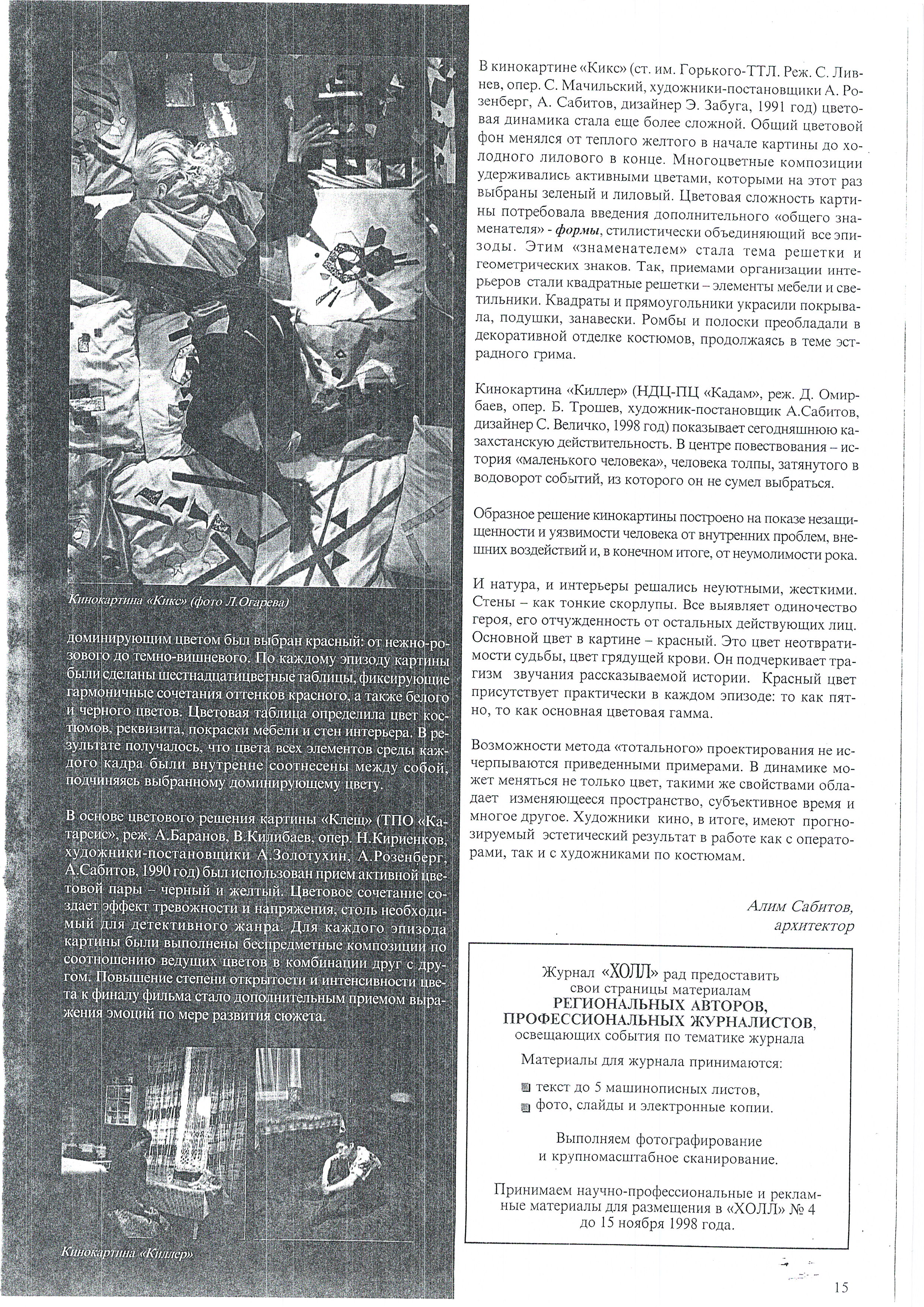 Сабитов, А. ««Тотальность» цвета. Интерьеры в кино». 1998.