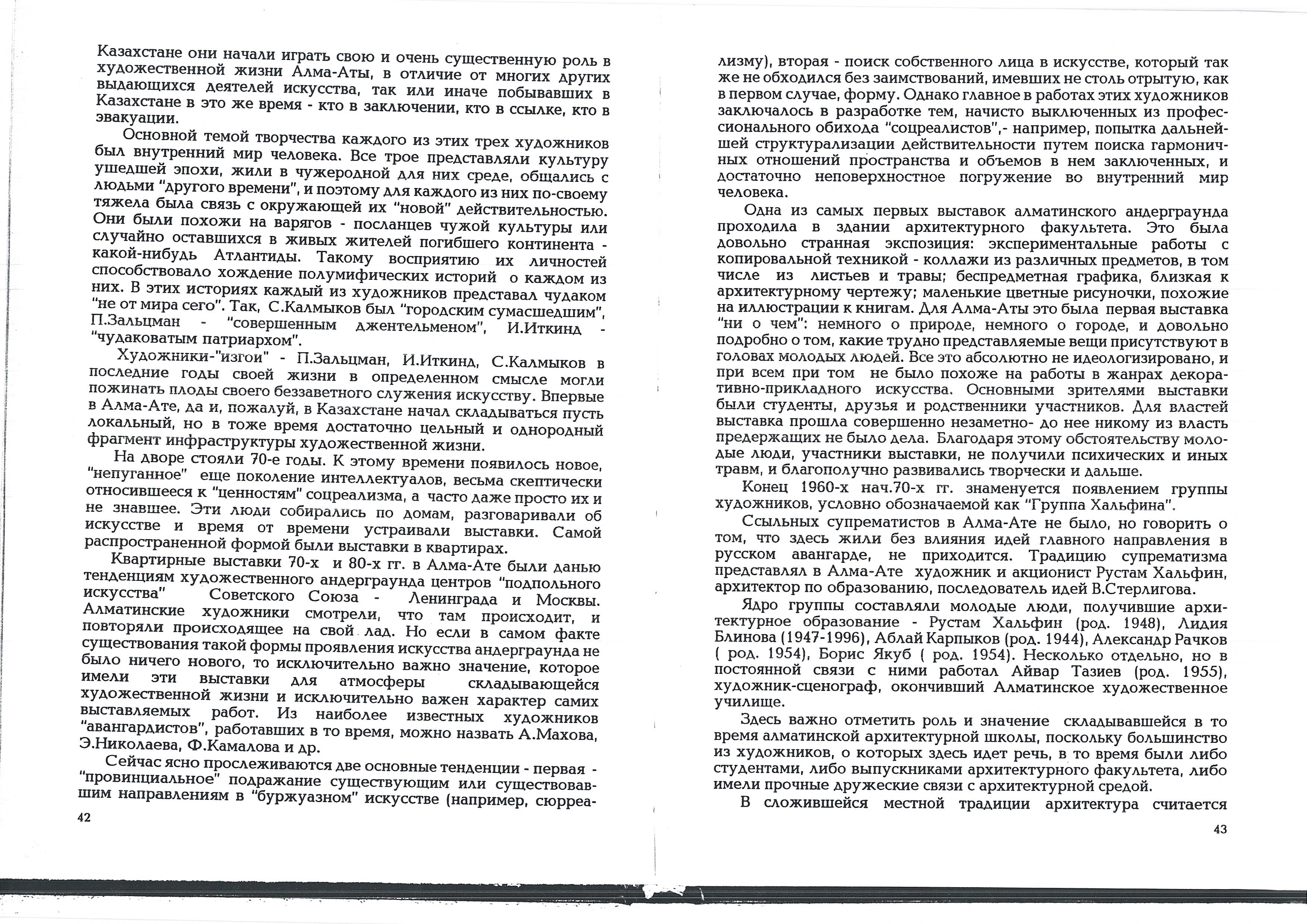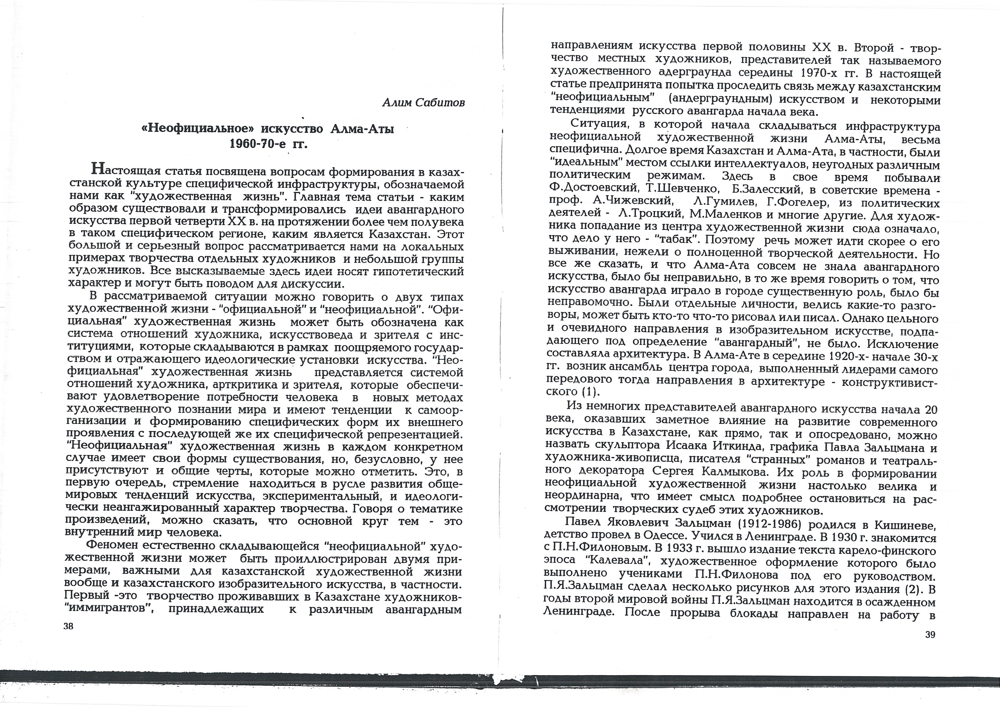 Сабитов, А. «"Неофициальное" искусство Алма-Аты 1960-70-е гг.». 2000.