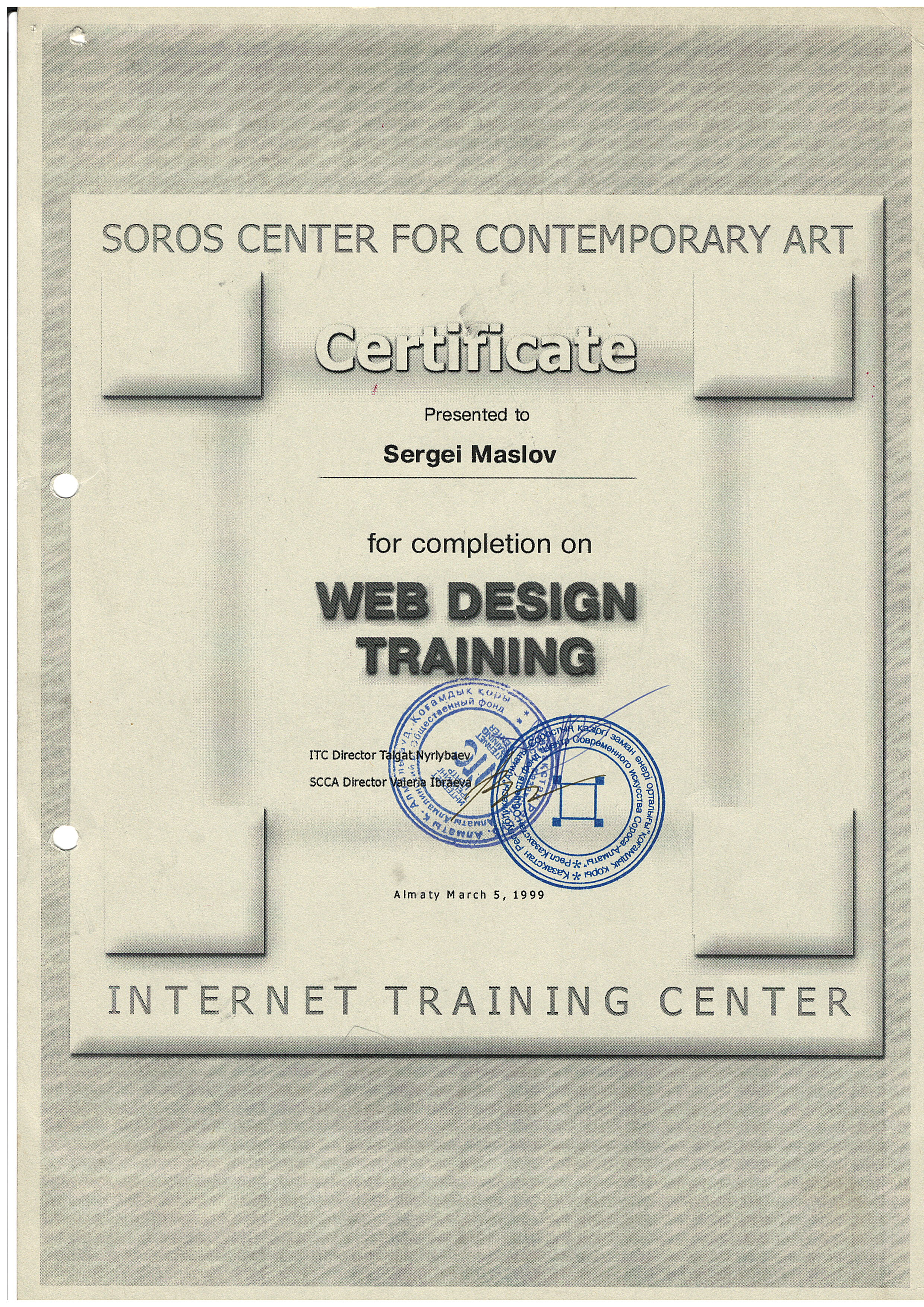 Author unknown. "WEB DESIGN TRAINING." 1999.