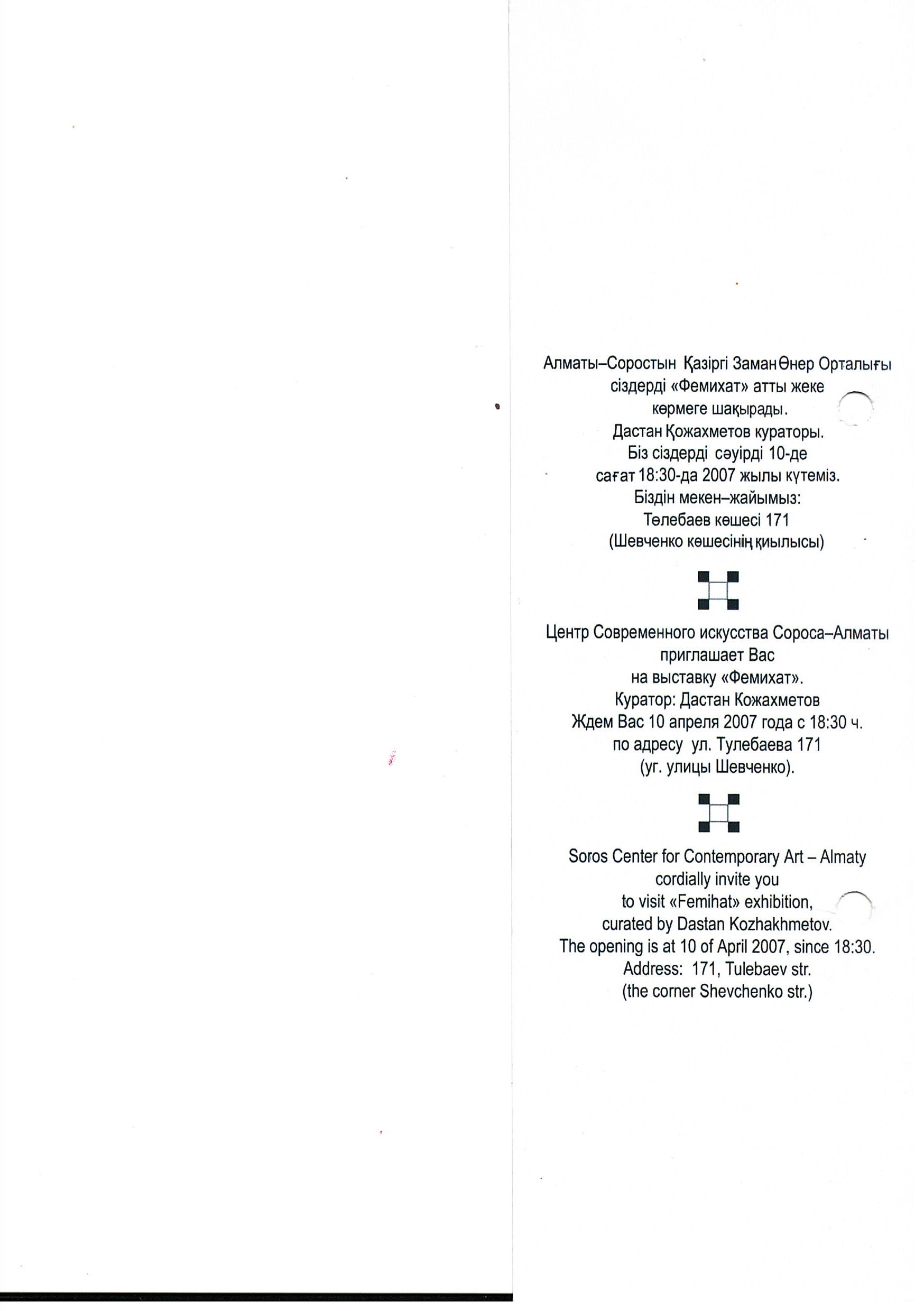 "Soros-Almaty Center for Contemporary Art (171 Tulebaev Street, corner of Shevchenko Street)," Almaty, Kazakhstan.