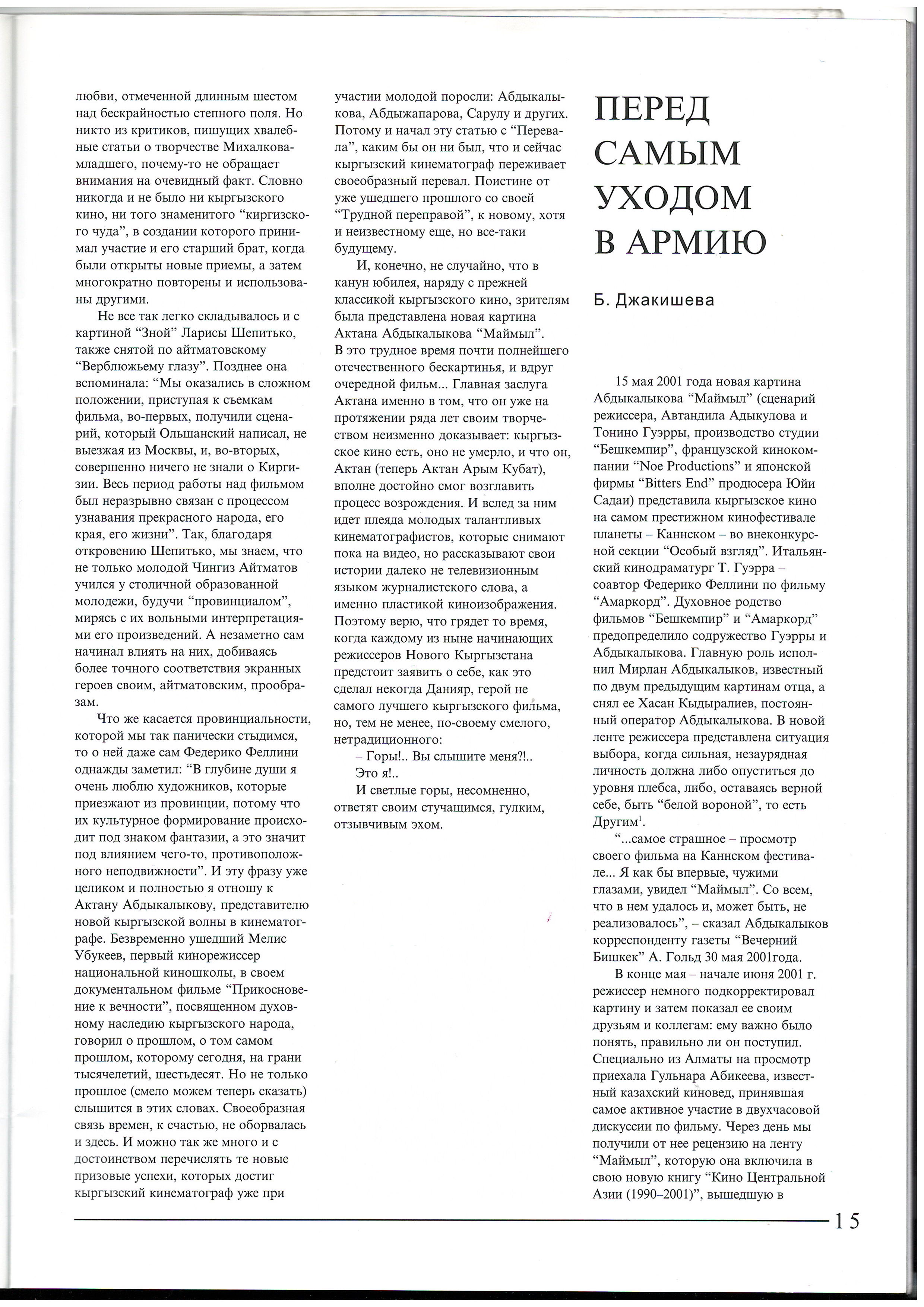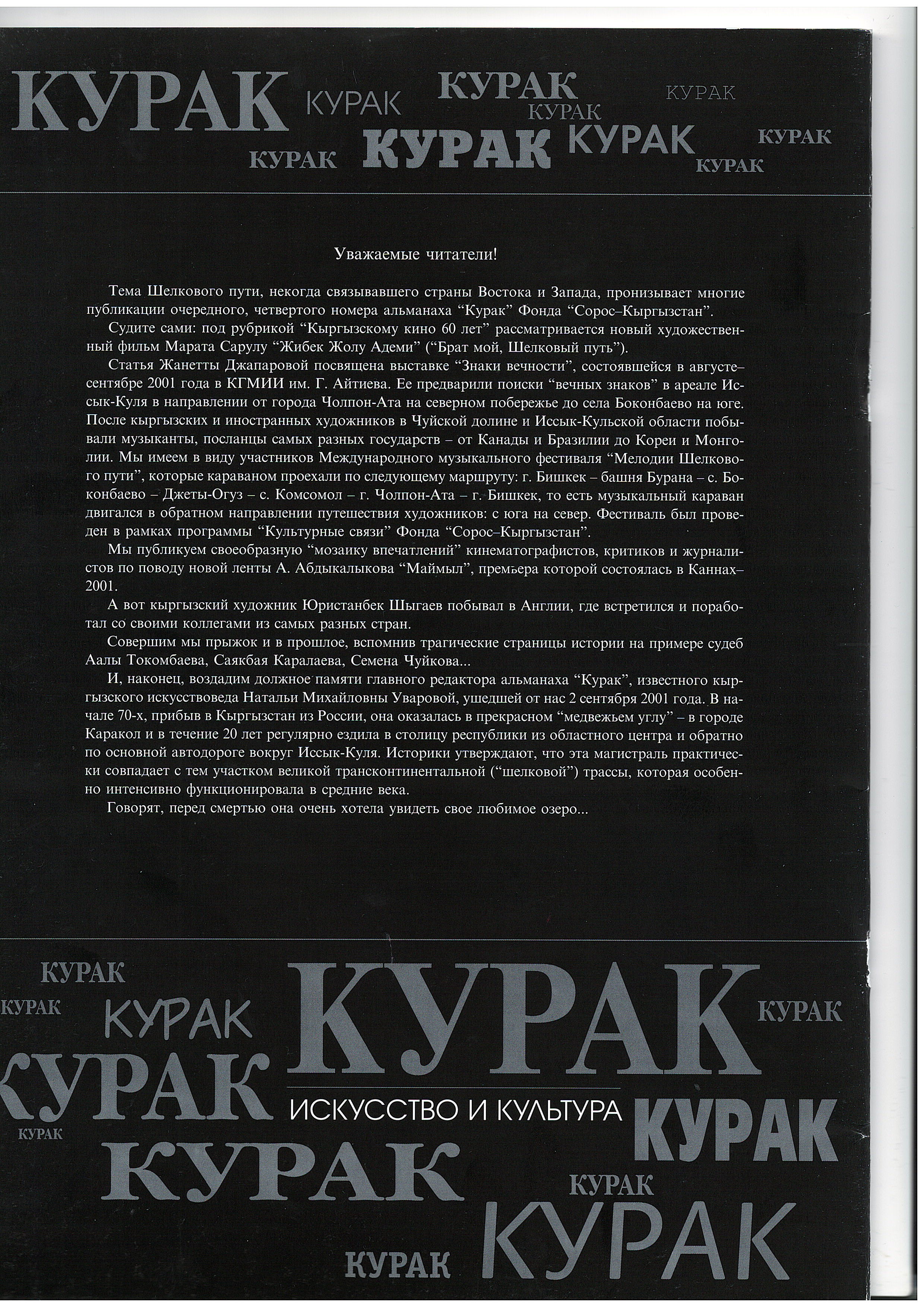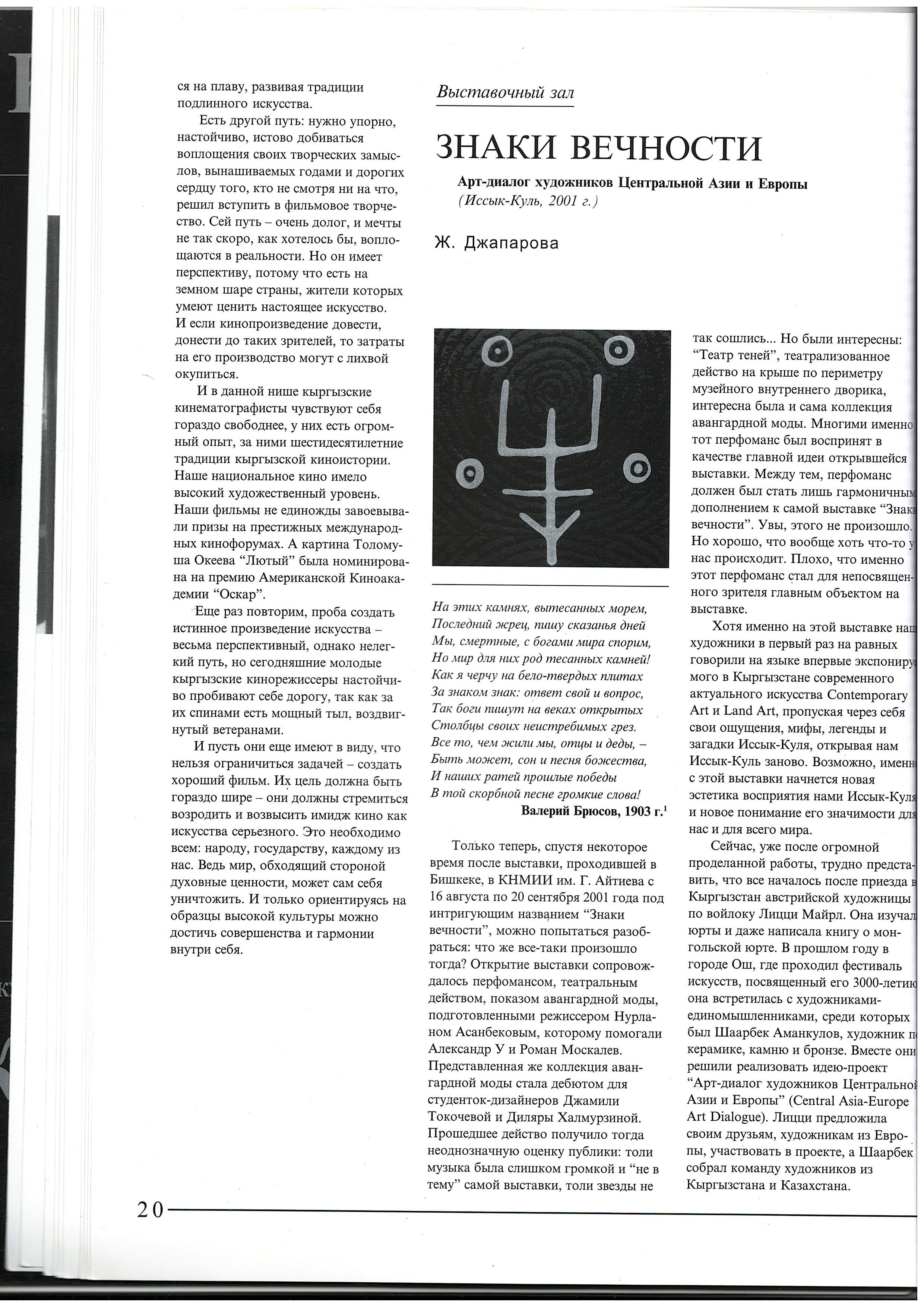 Japarova, Z. "Signs of Eternity. Art Dialogue between Artists of Central Asia and Europe (Issyk-Kul, 2001)." 2001.