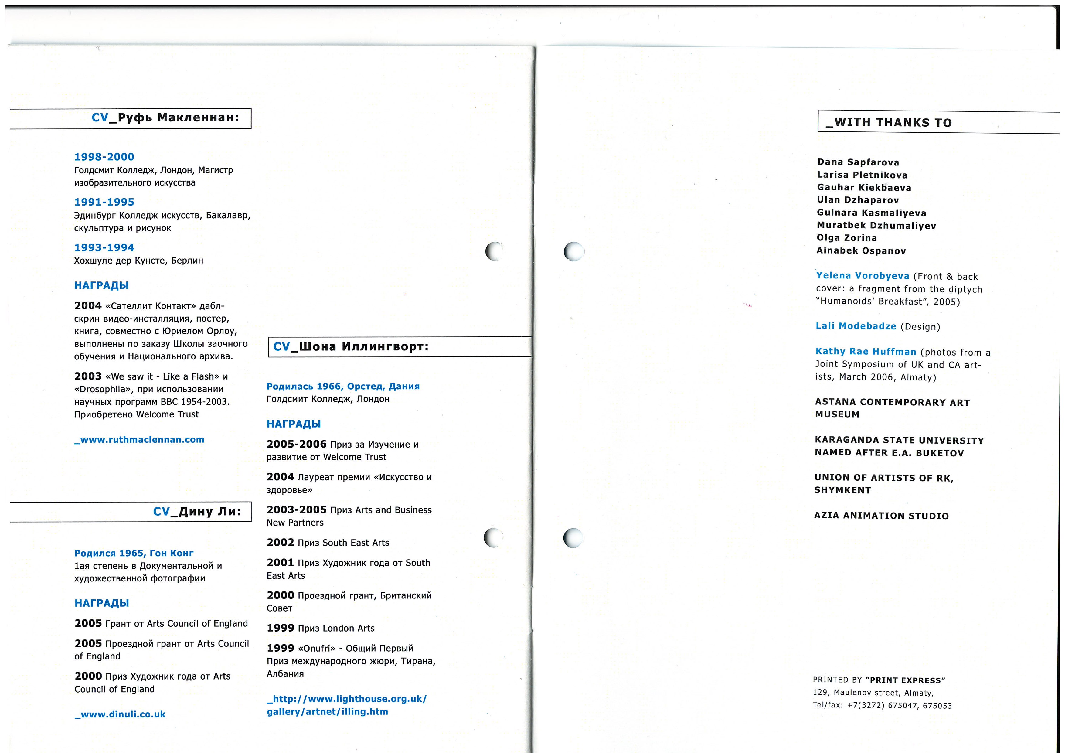 Author unknown. "UK+CA. 3 UK Artists in Central Asia." 2006.