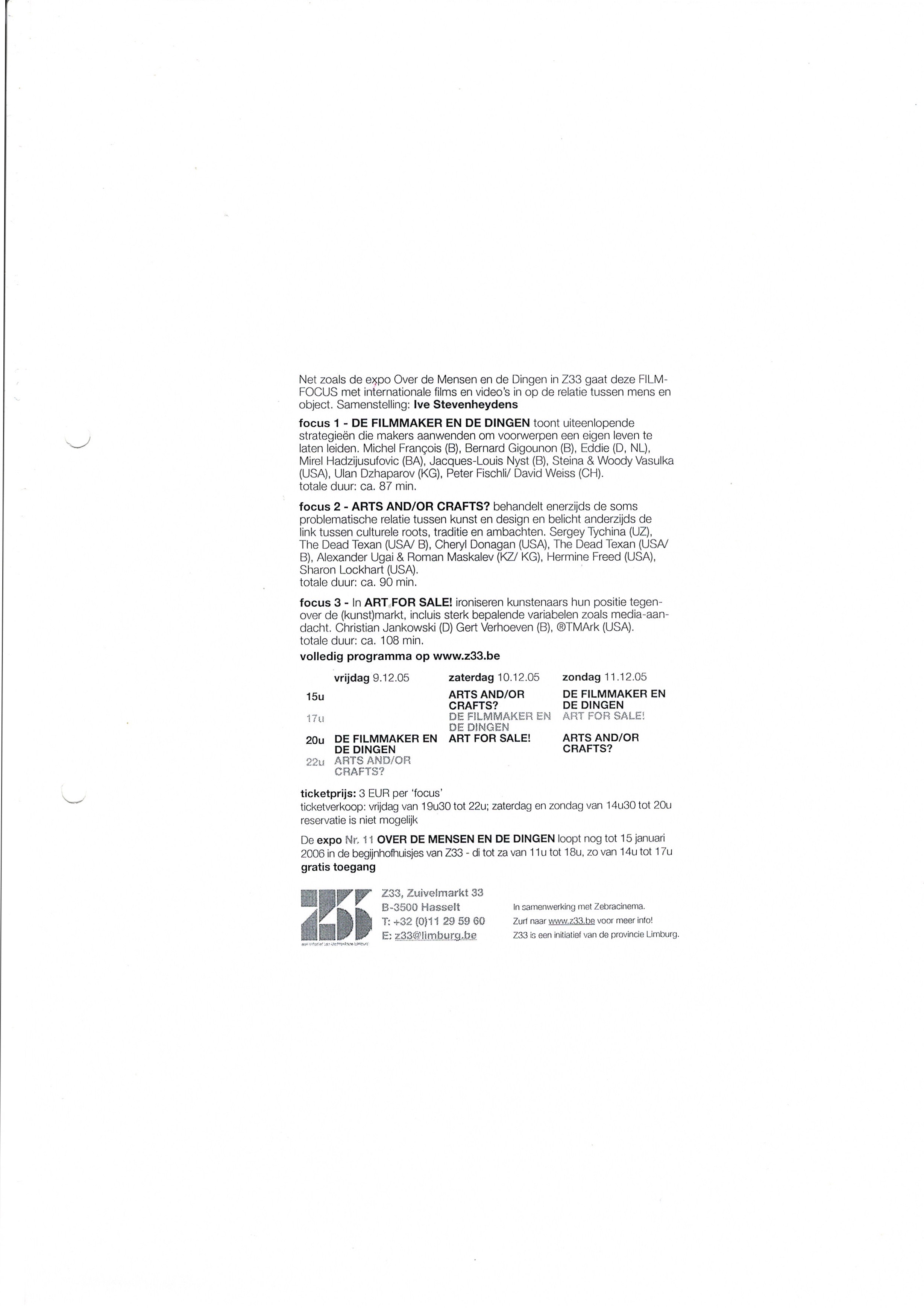 The focus of the film "Over de mensen en de dingen filmfocus". 2006.