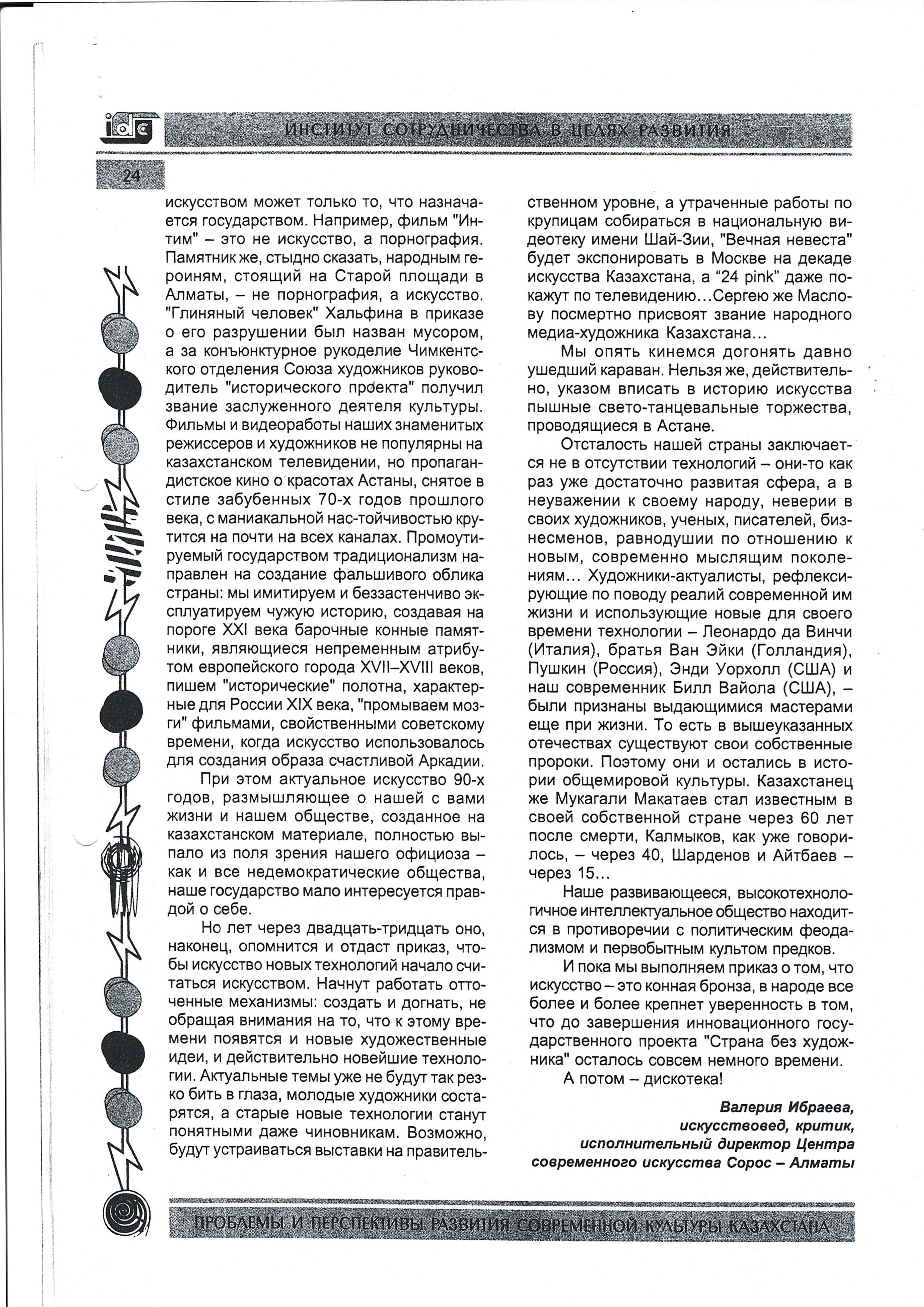 Ibraeva, V. Kazakhstan: New Technologies in Art and Cultural Management. 2002.