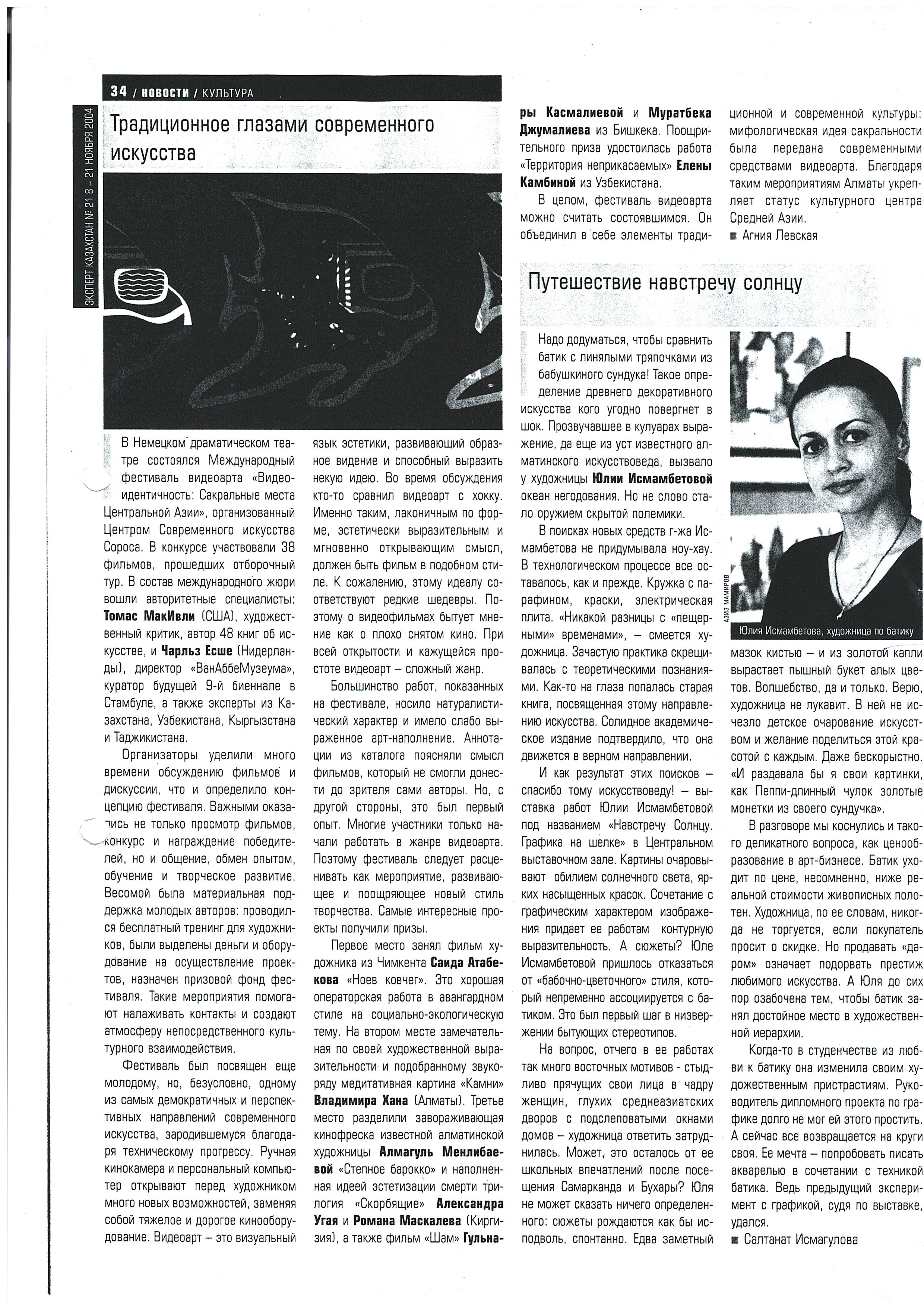 Levskaya, A. "Tradition through the eyes of contemporary art." 2004. Ismagulova, S. "Journey towards the sun." 2004.