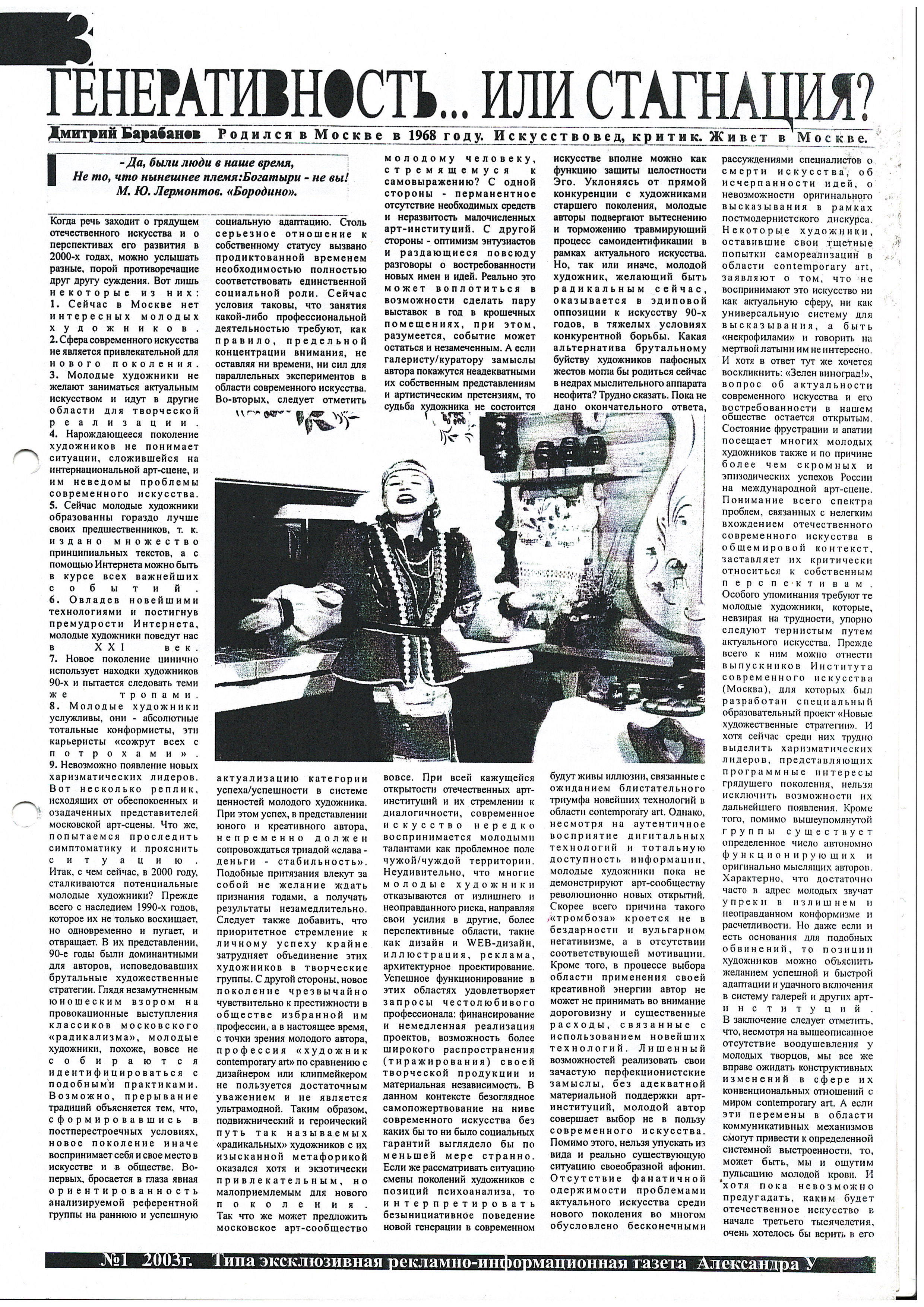Barabanov Dmitry. “Generativity or Stagnation?” 2003.
