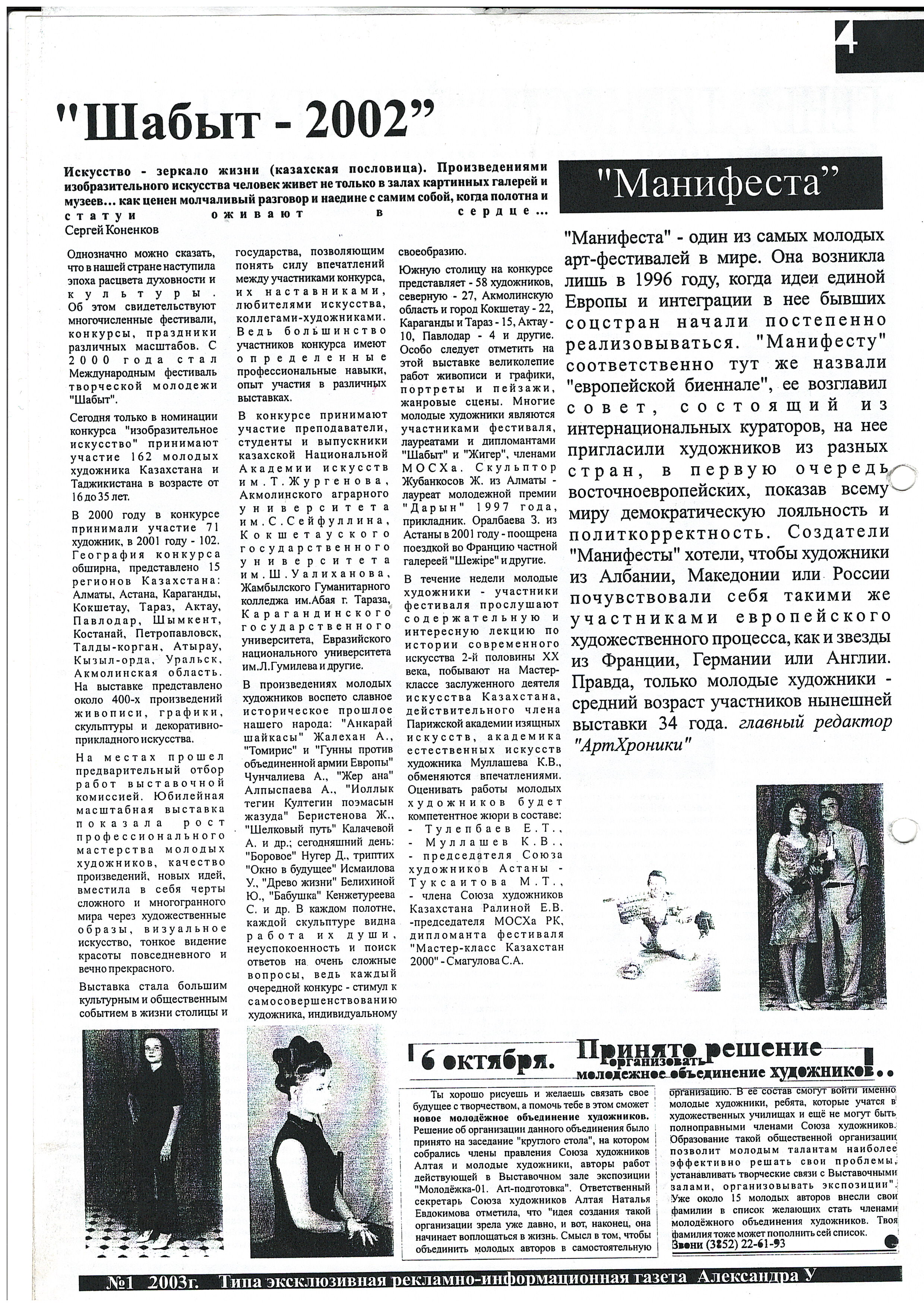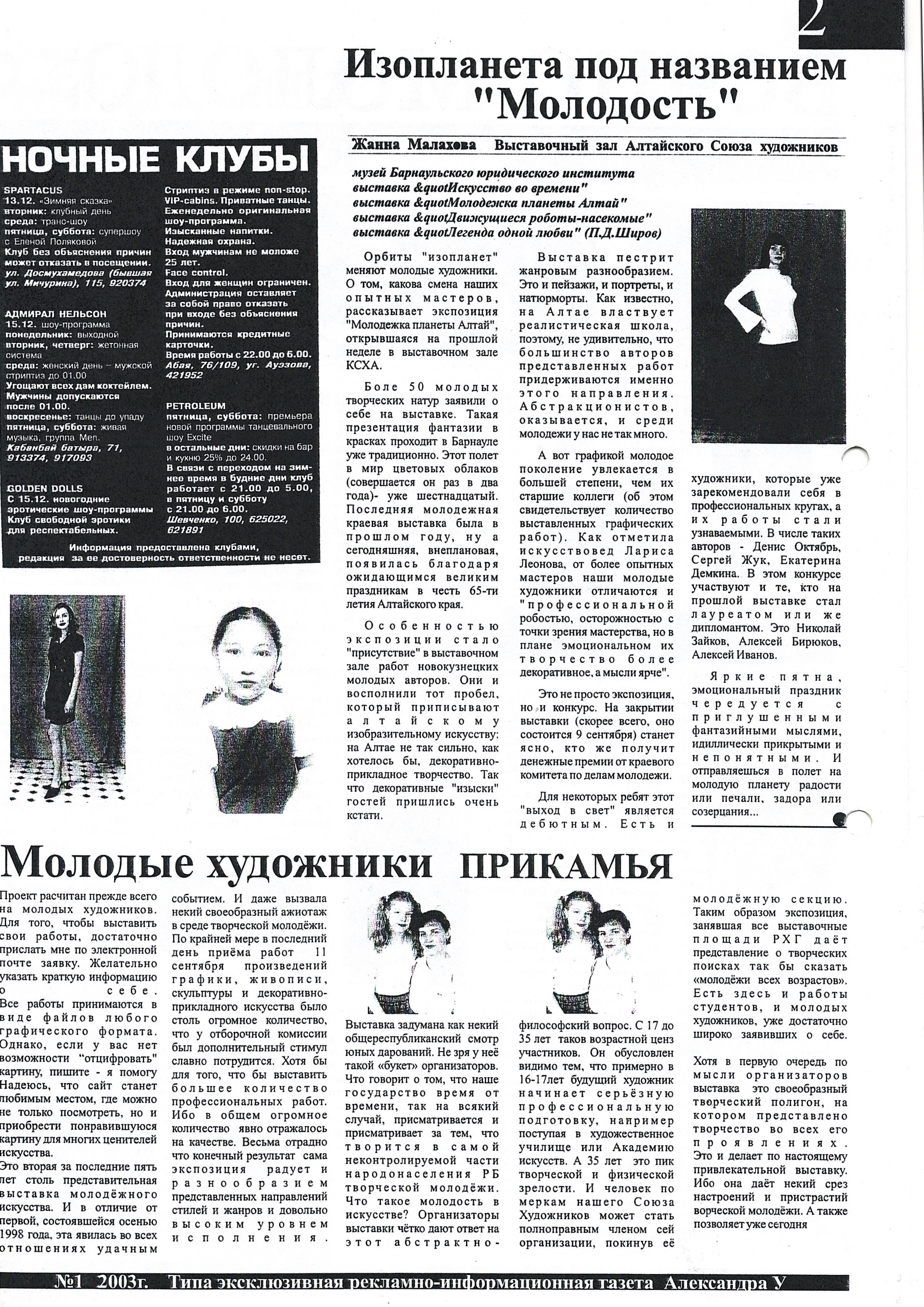 Malakhova Zhanna. “An Art Planet Called ‘Youth.’” 2003.
