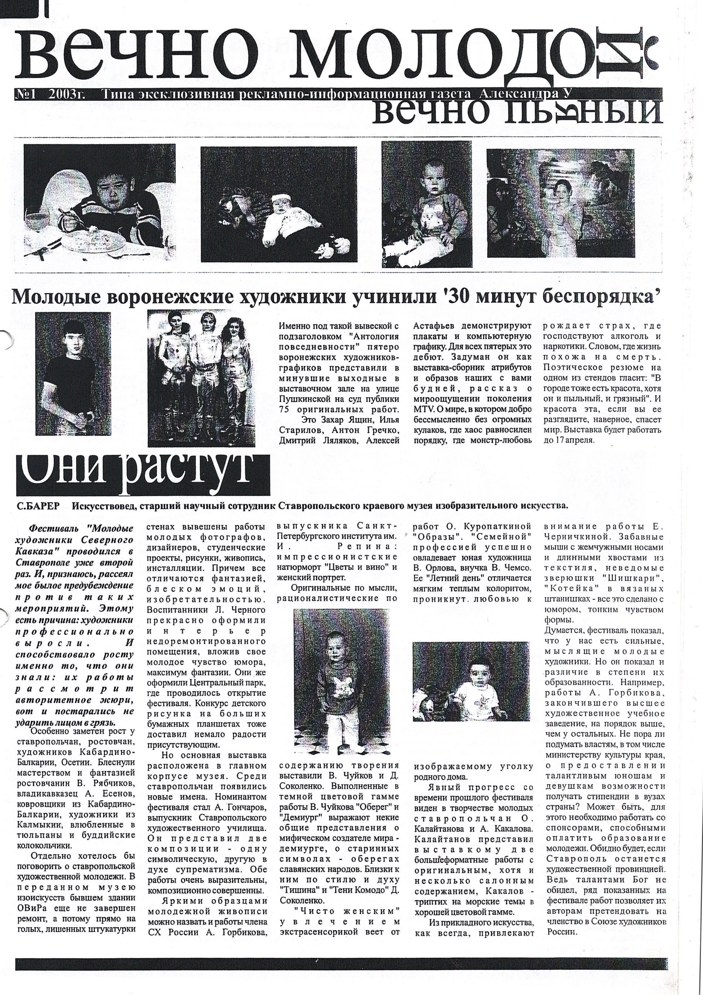 Author unknown. “Young Voronezh Artists Caused 30 Minutes of Disorder.” 2003.