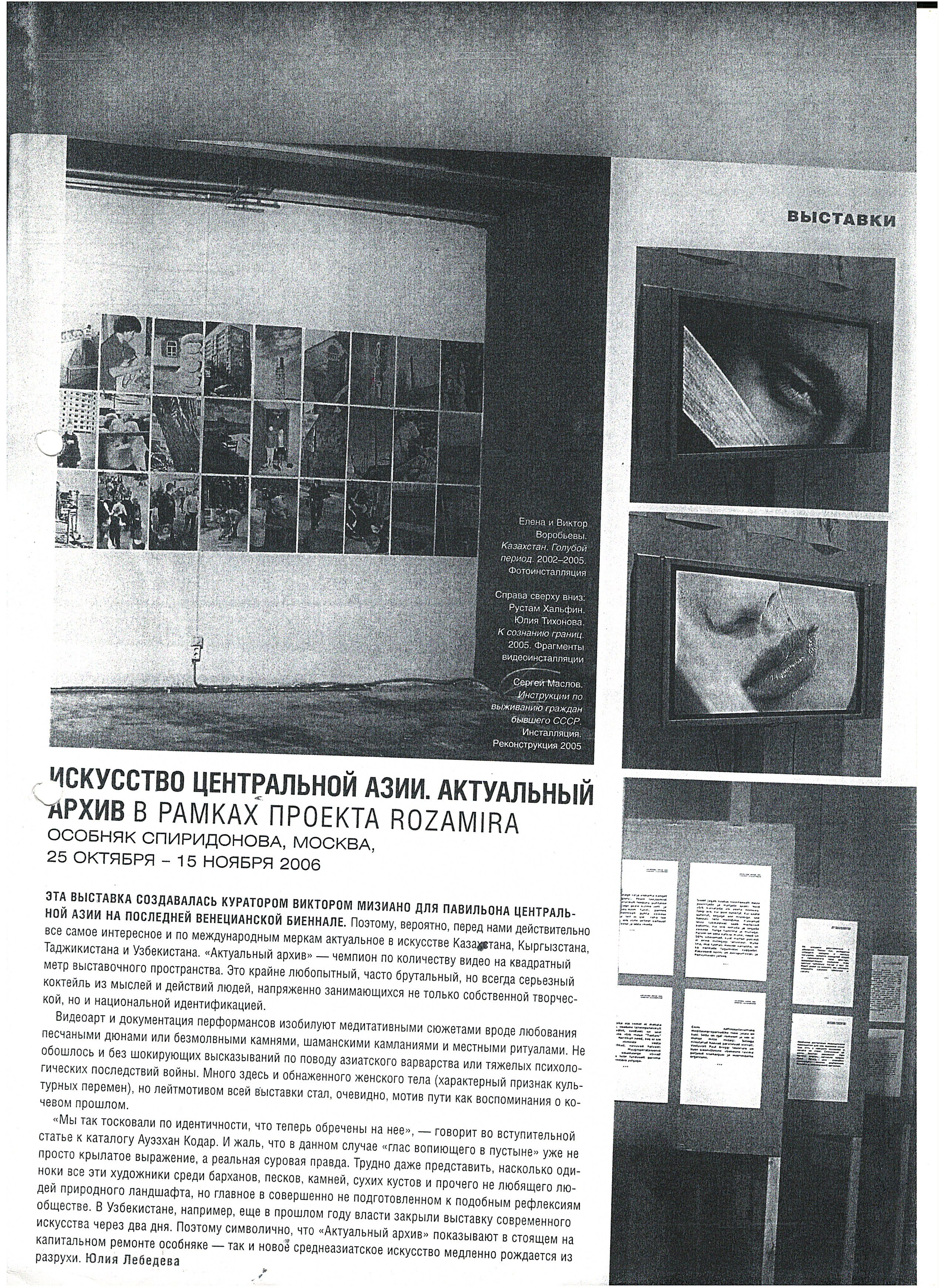 Lebedeva, Y. "Art of Central Asia. Contemporary Archive. As part of the ROZAMIRA project." 2006.