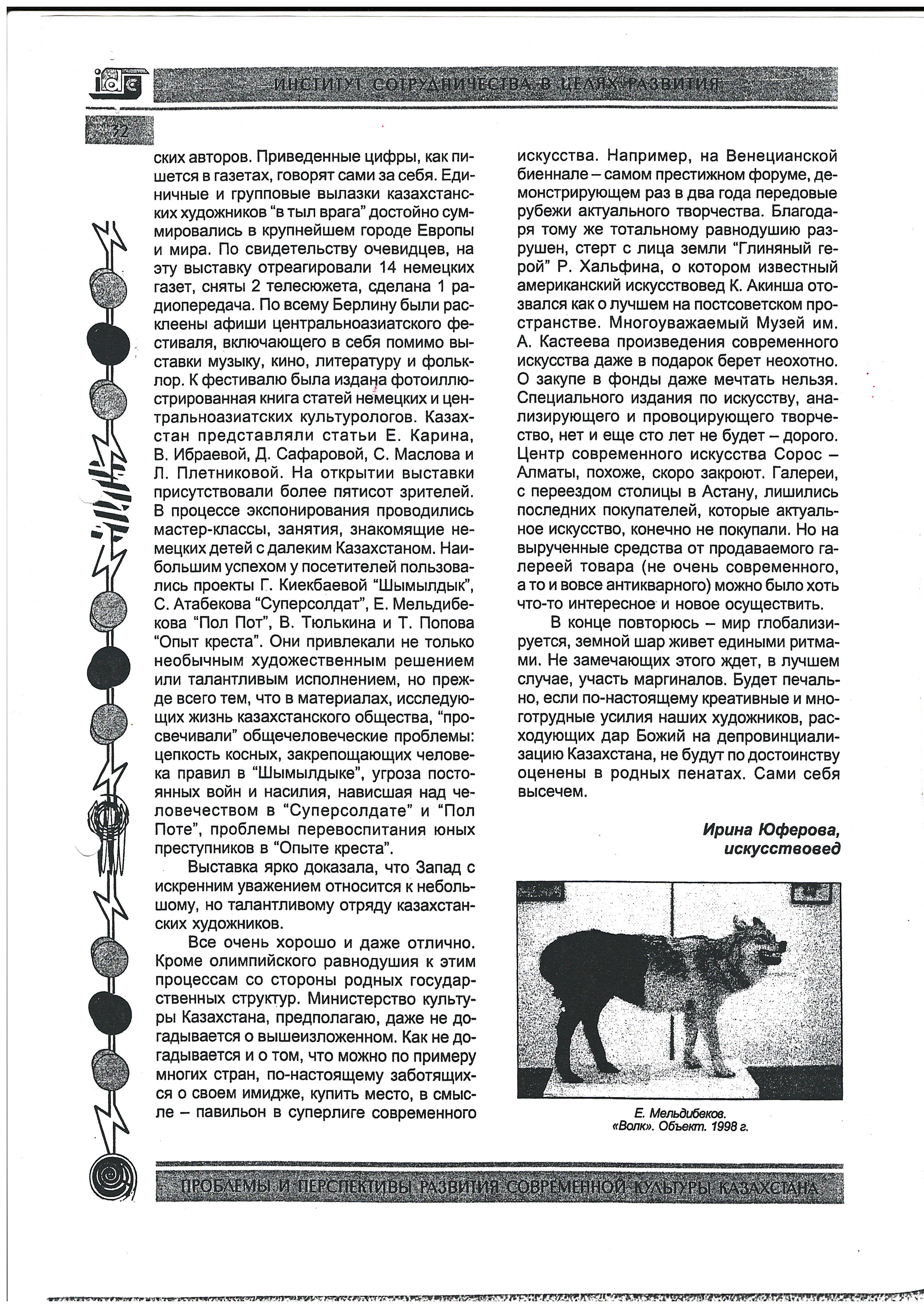 Yuferova, I. "Fine Arts of Kazakhstan. Values and Dynamics of International Relations." 2002.